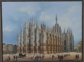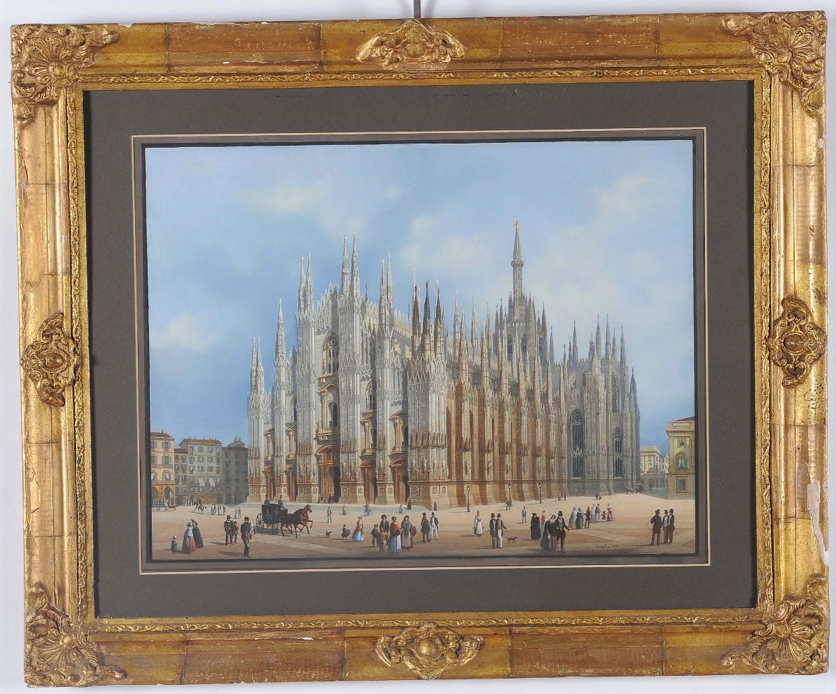 Incisione acquerellata raffigurante il Duomo di Milano, Canella 1830