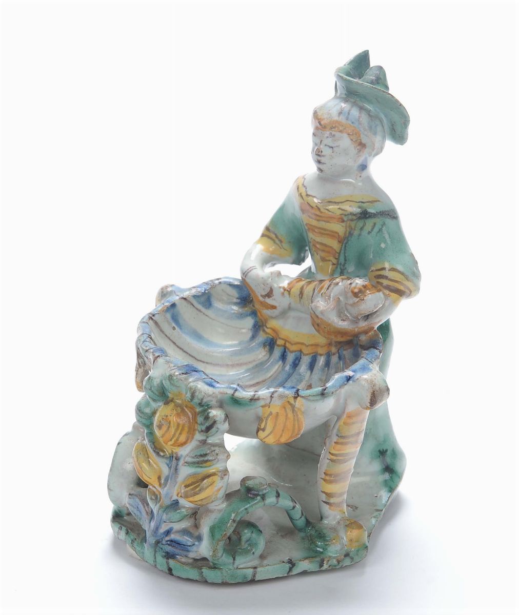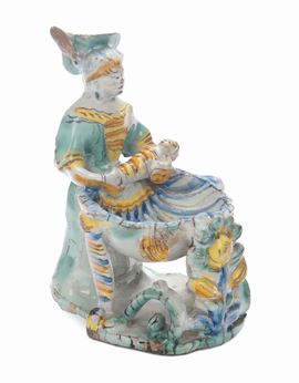 Saliera antropomorfa in maiolica, San Quirico d’Orcia, XVII secolo