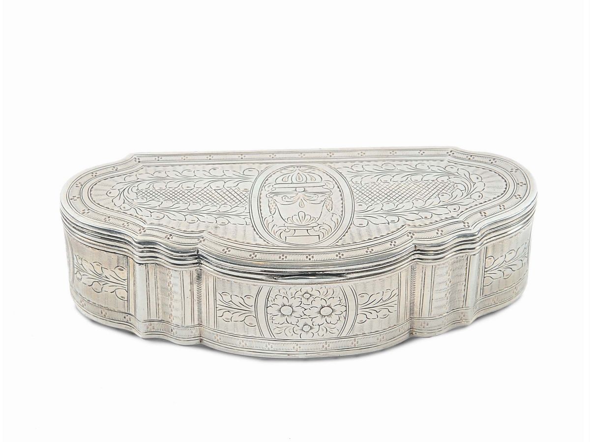 Scatola in argento, probabilmente Olanda XVIII reca marchio argentiere “ F. W.”