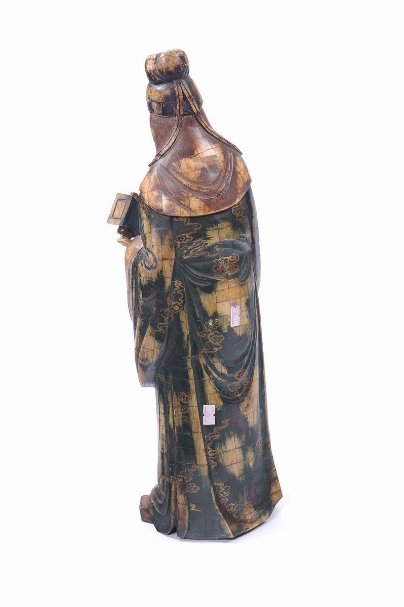 Scultura raffigurante dignitario in legno e osso, Cina XX secolo
