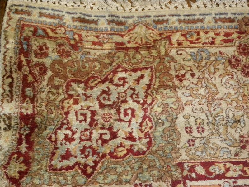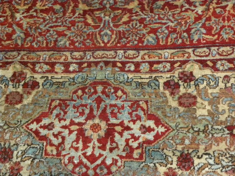 fondo rosso con decoro floreale e medaglione centrale, cm 356x260
