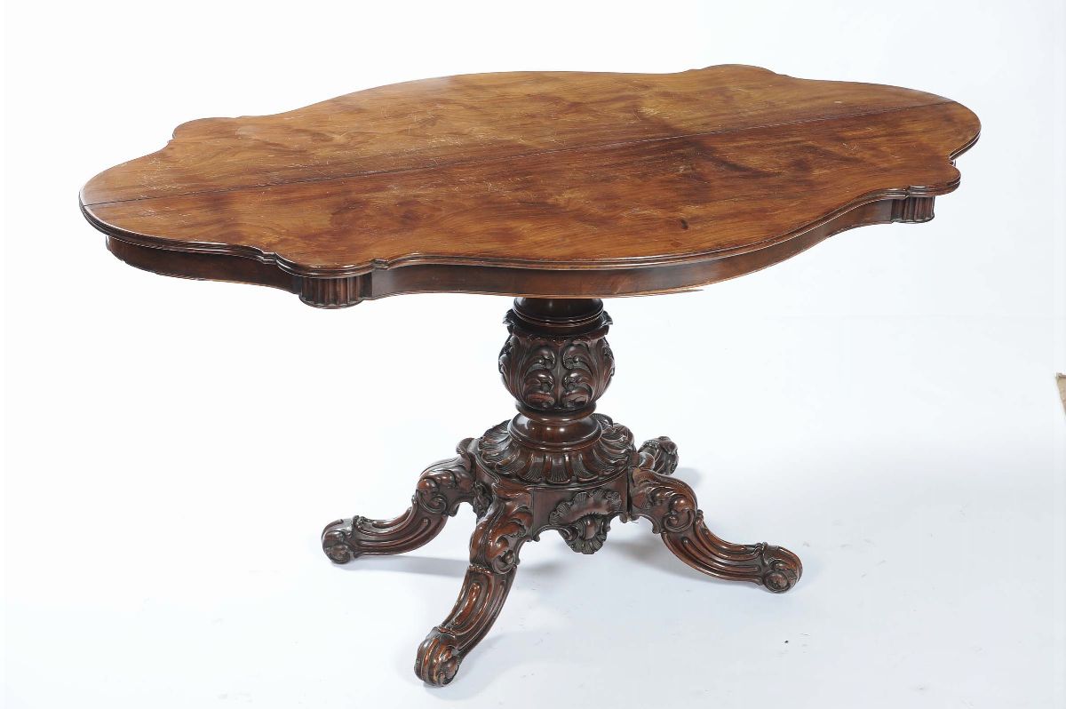 Tavolo da centro a biscotto in mogano, epoca Luigi Filippo