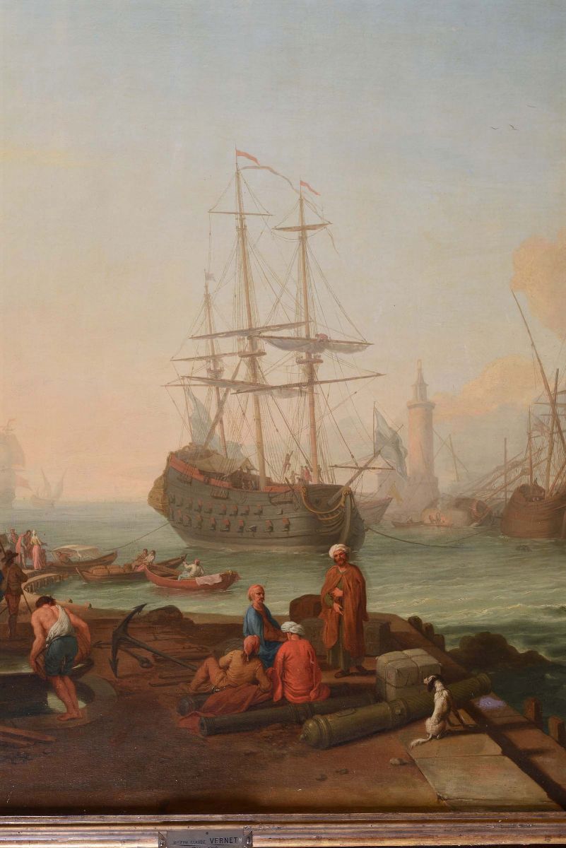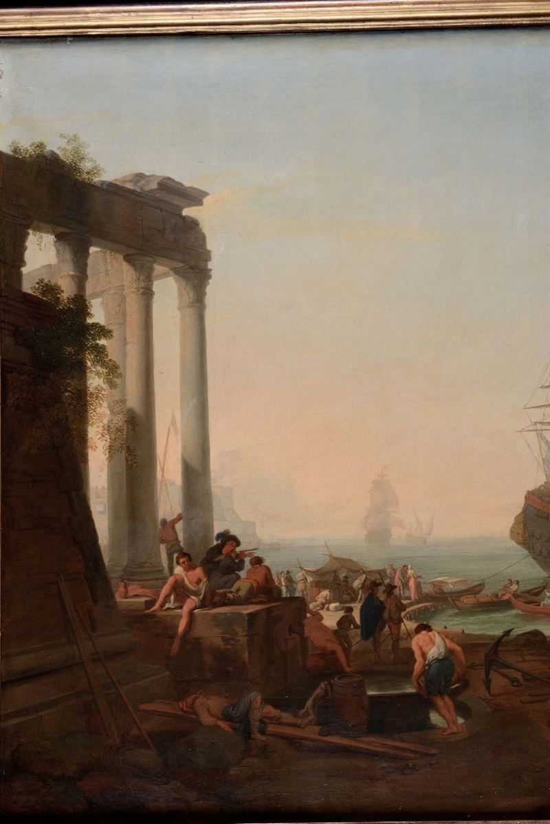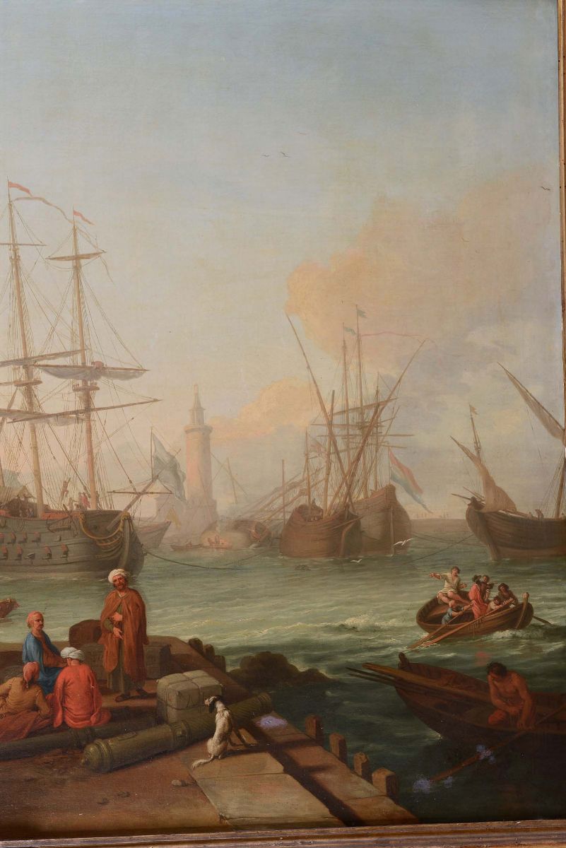 Adrien Manglard (Lione 1695 - Roma 1760) Scena di porto