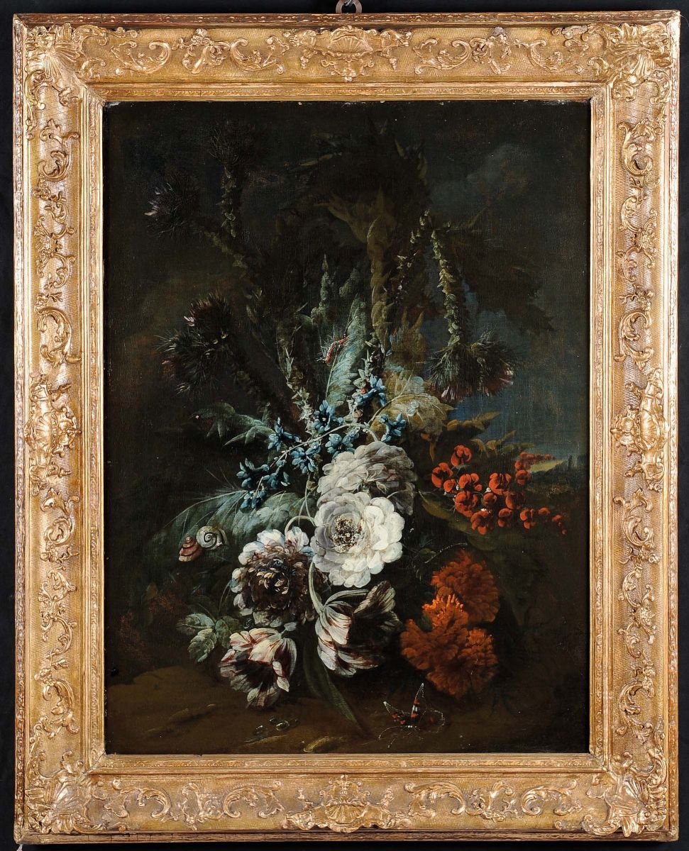 Scuola Fiamminga del XIX secolo Nature morte con fiori ed insetti