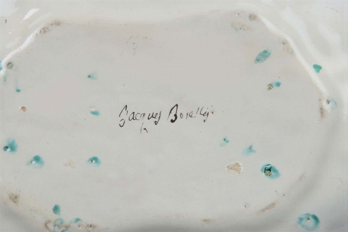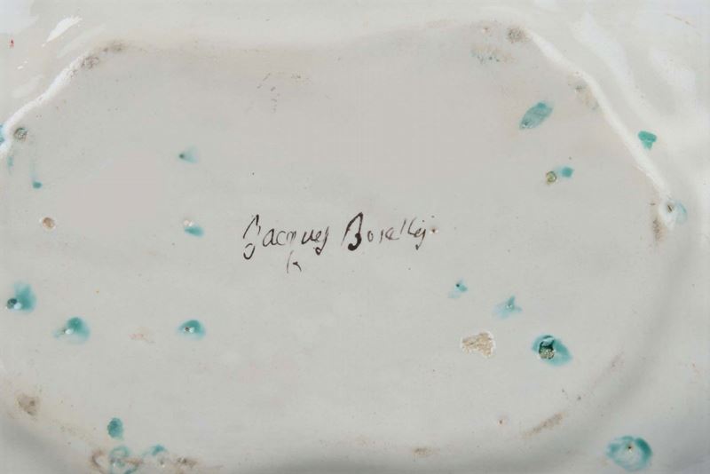 Bacile da barbiere in maiolica con decoro alla rosa, Jacques Boselly, Savona XVIII secolo
