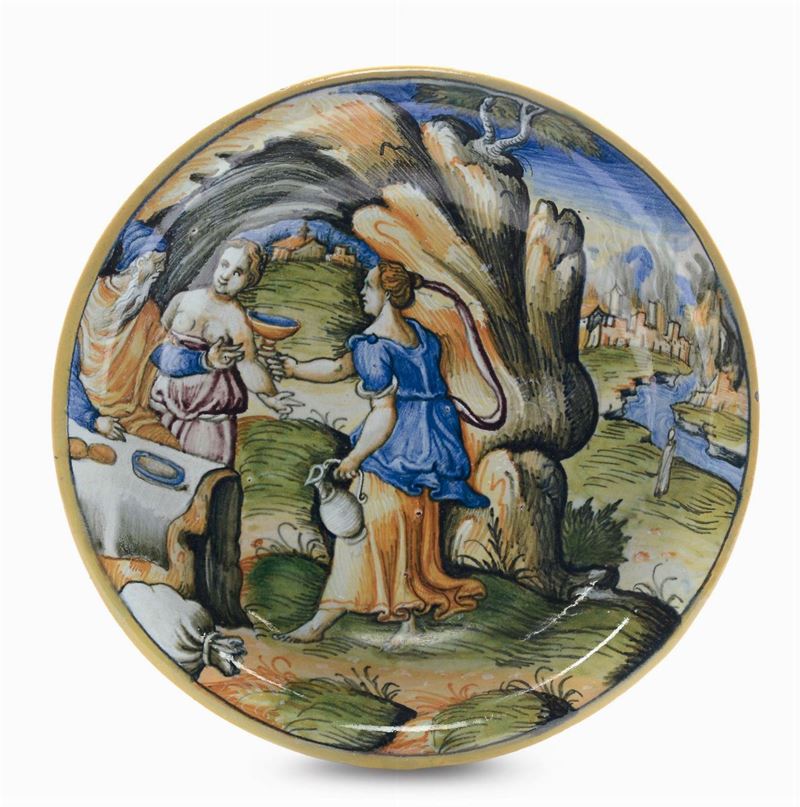 Ciotola in maiolica a decoro istoriato, Bottega urbinate XVI secolo (imitazione XIX secolo),