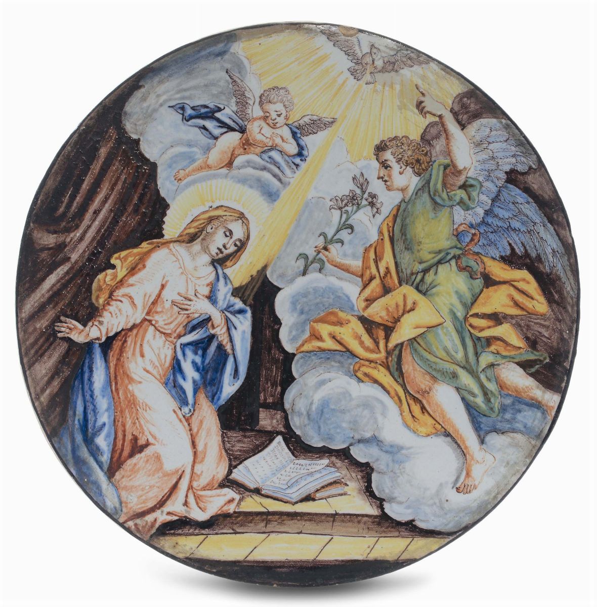 Disco in maiolica con Annunciazione, San Quirico XVIII secolo