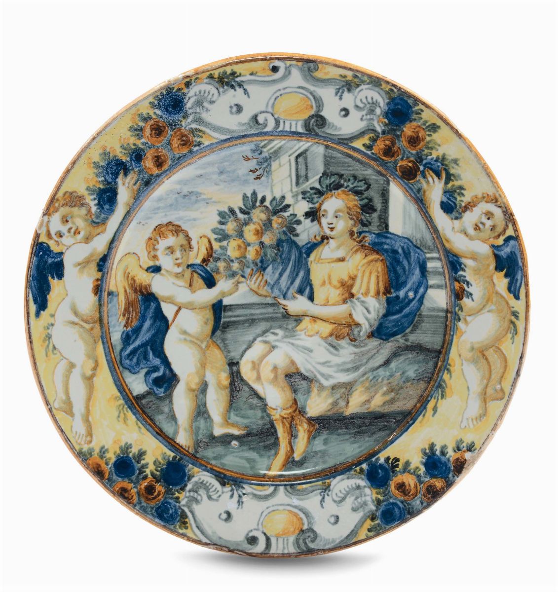 Piattino in maiolica decorato con allegoria dell’abbondanza, Castelli XVIII secolo