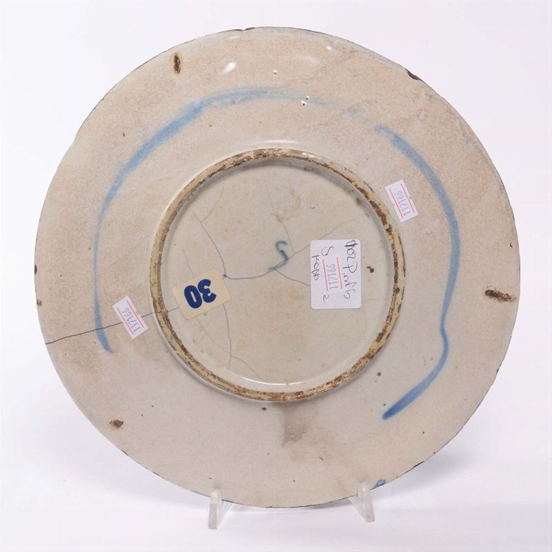 Piatto in maiolica “a scenografia barocca”, Savona XVIII secolo