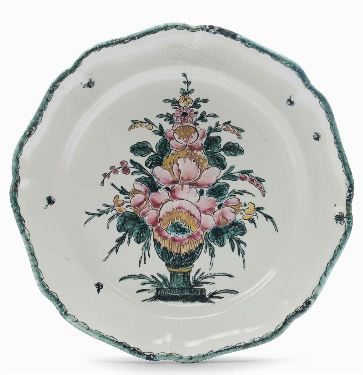 Piatto in maiolica con vaso di fiori, Jacques Boselly, Savona XVIII secolo