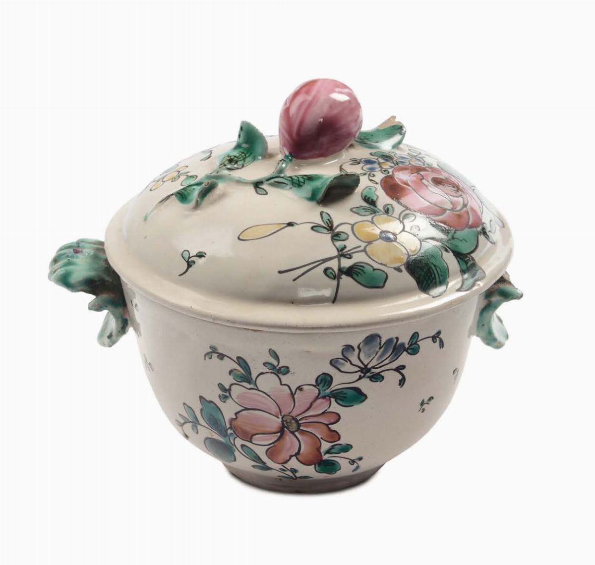 Zuccheriera in maiolica con decoro alla rosa, Jacques Boselly, Savona XVIII secolo