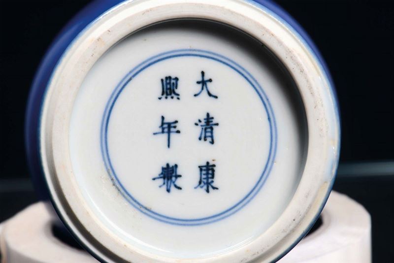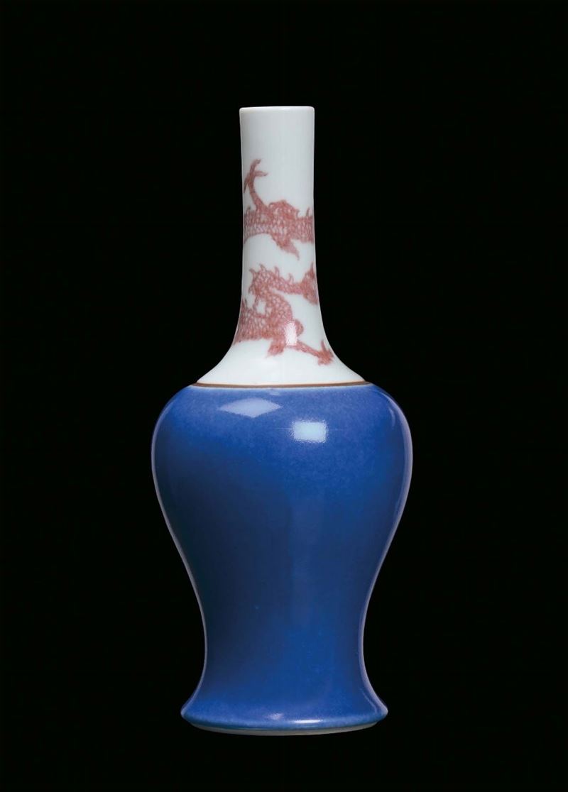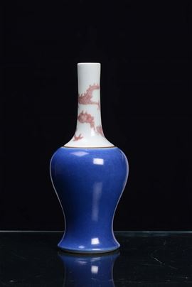 A blue porcelain vase with red dragon, China, Qing Dynasty , 19th century Apocryphal Kangxi mark