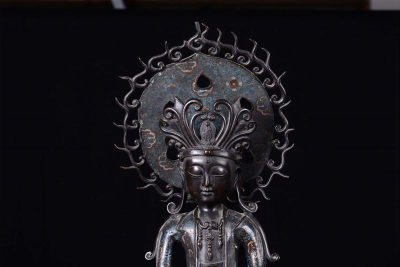 A bronze and cloisonné enamels sculpture representing Bodhisattva, Japan 19th century