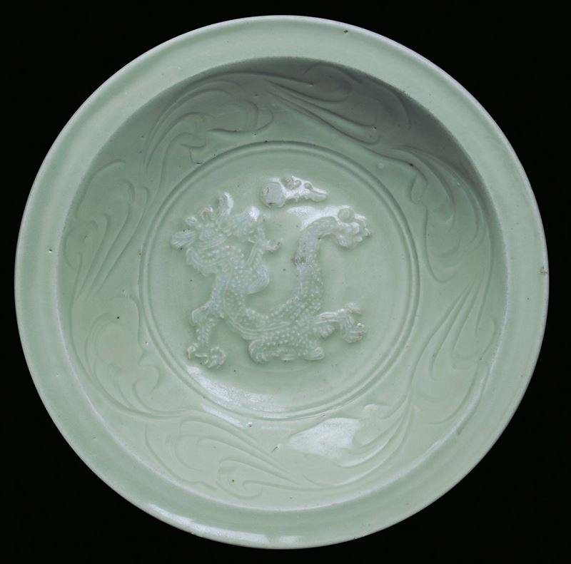 A Celadon porcelain plate with dragon, China, Ming Dynasty, 15th century