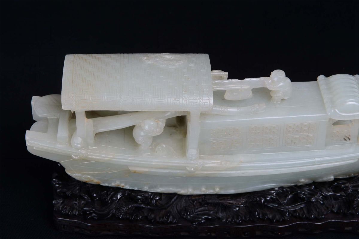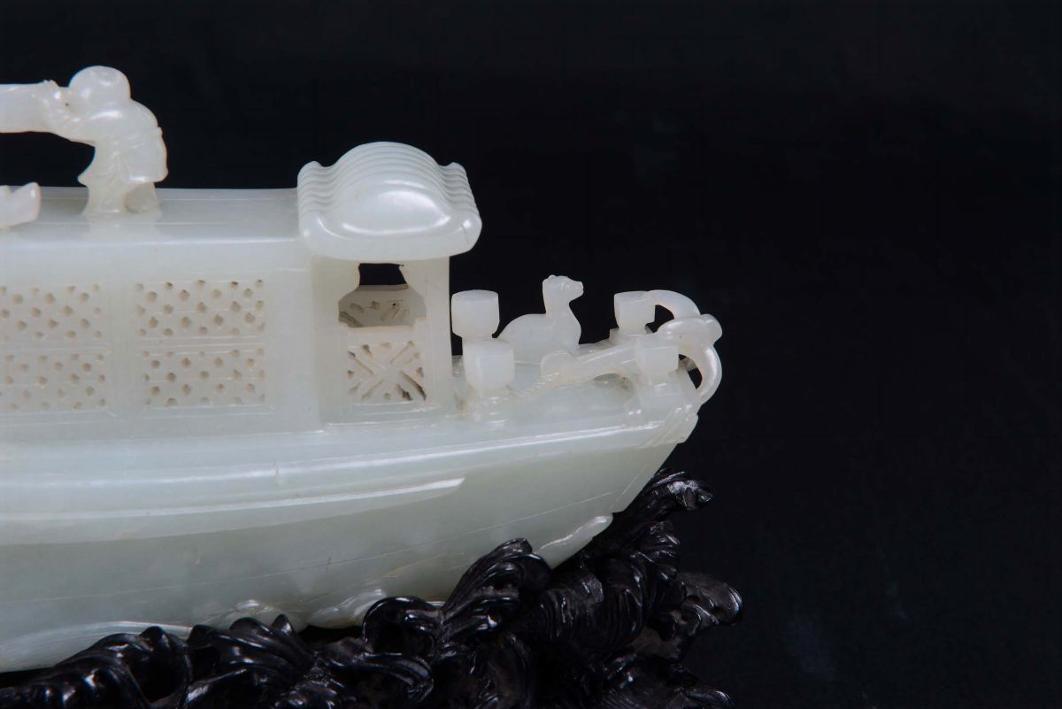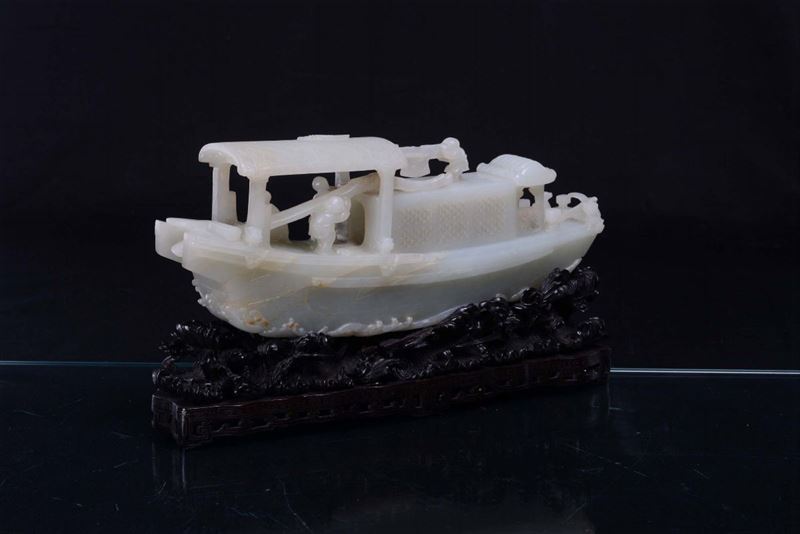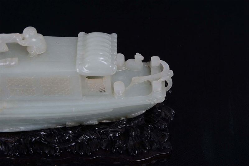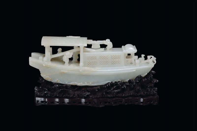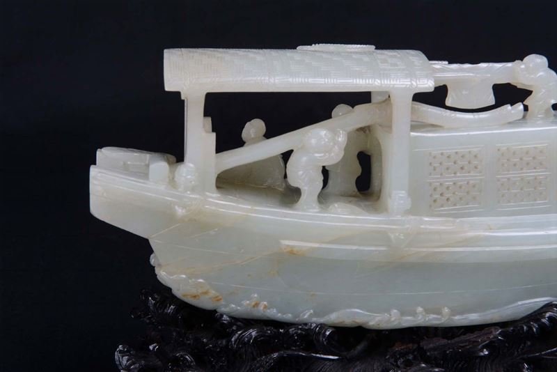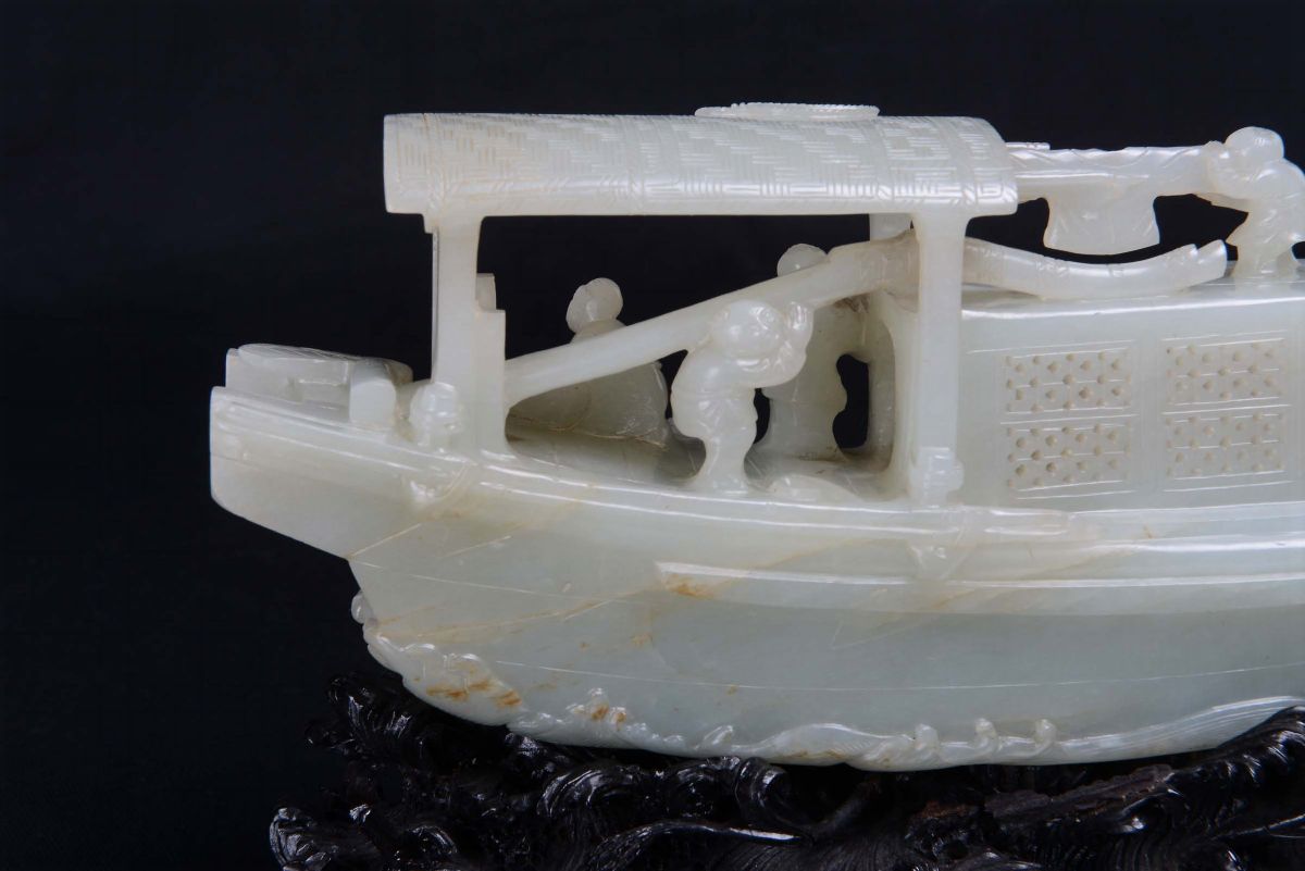 A Celadon white jade ship with people, China, Qing Dynasty, Qianlong Period ( 1736-1795)