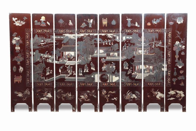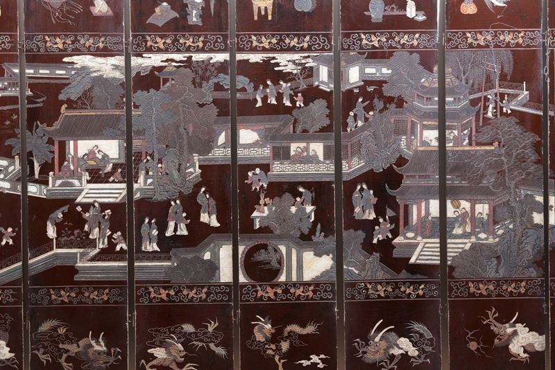A Coromandel screen with figures an landscapes, China, Qing Dynasty, 18th century