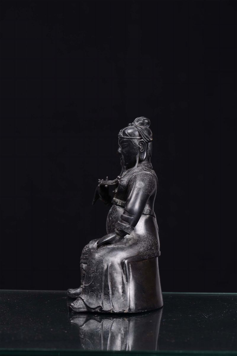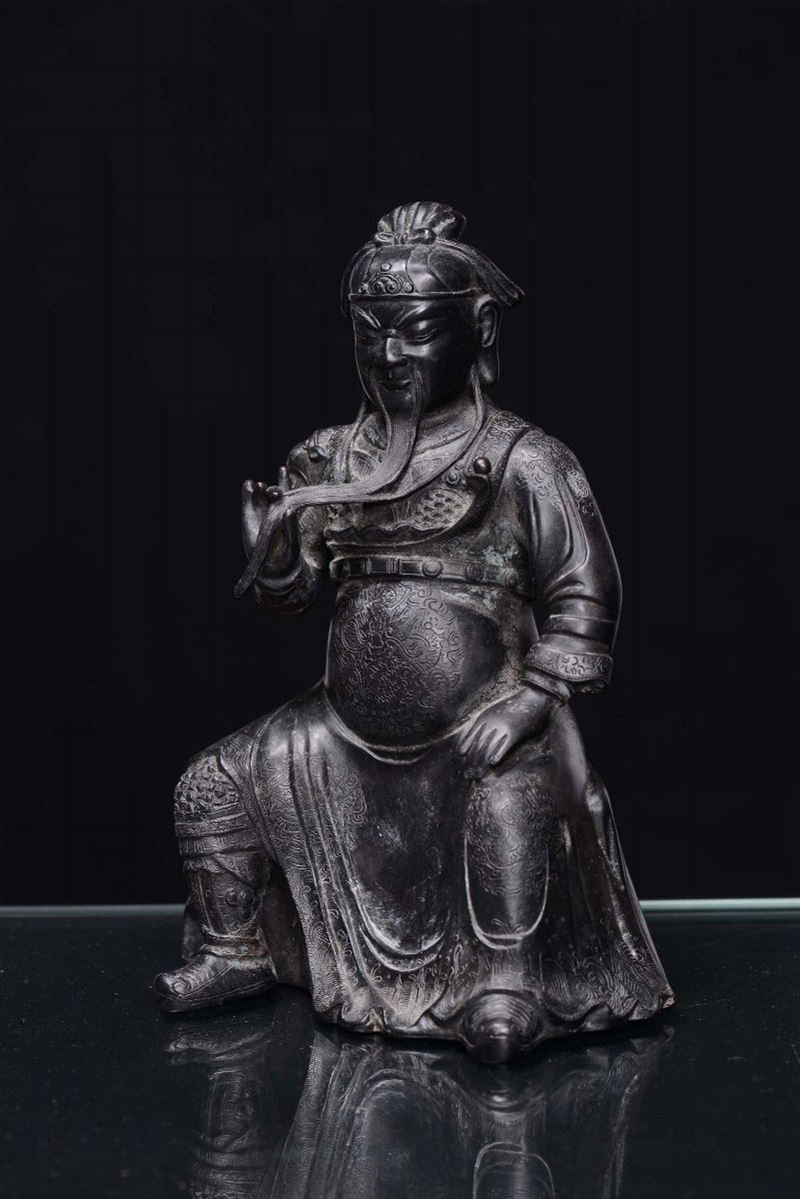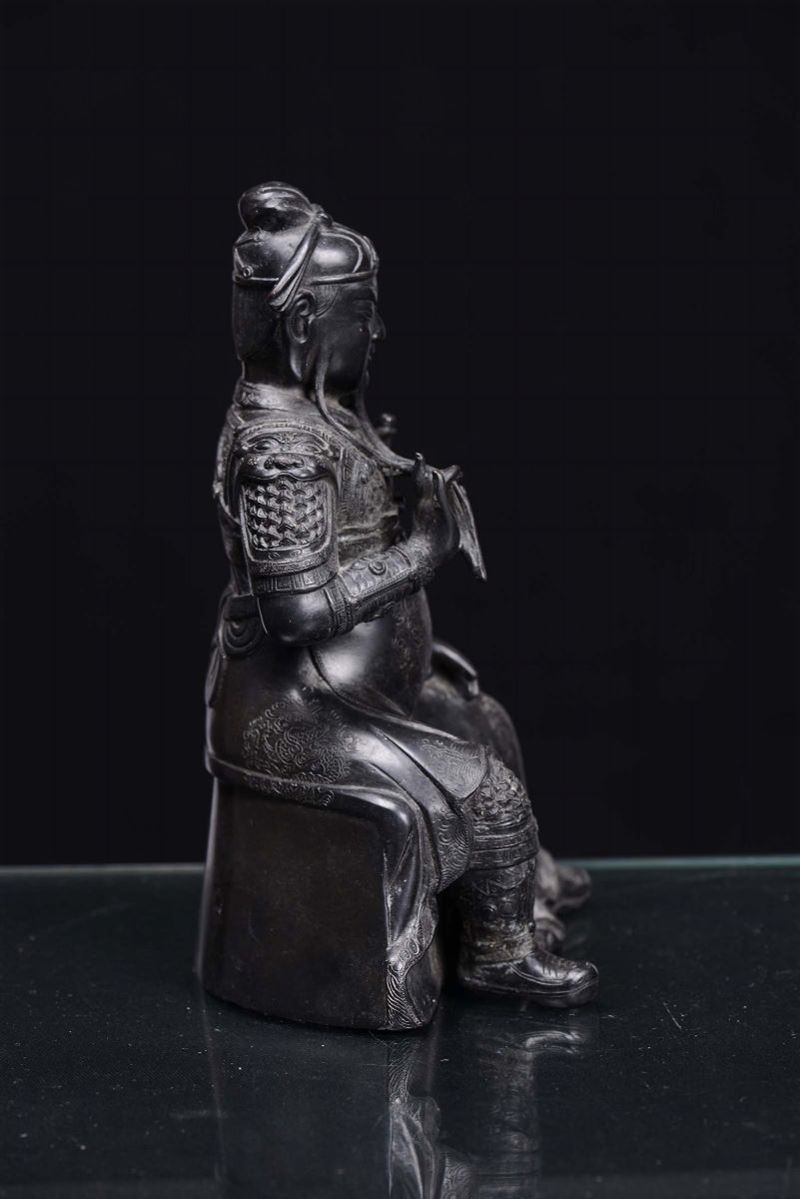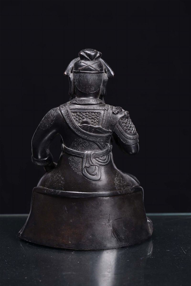 A dark coating bronze figure of warrior, China, Ming Dynasty, 17th century
