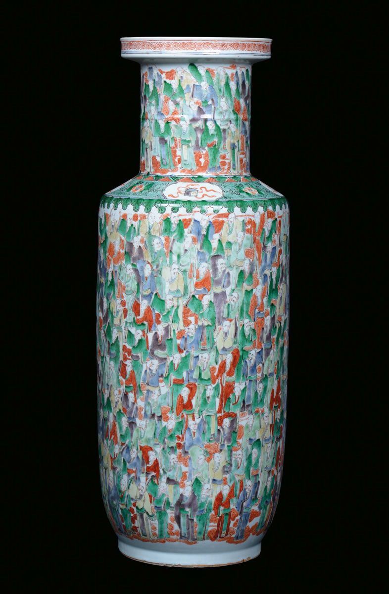 A Five Hundred lohan Famille Verte polychrome porcelain vase, China, Qing Dynasty, 19th century Decoration with figures [..]
