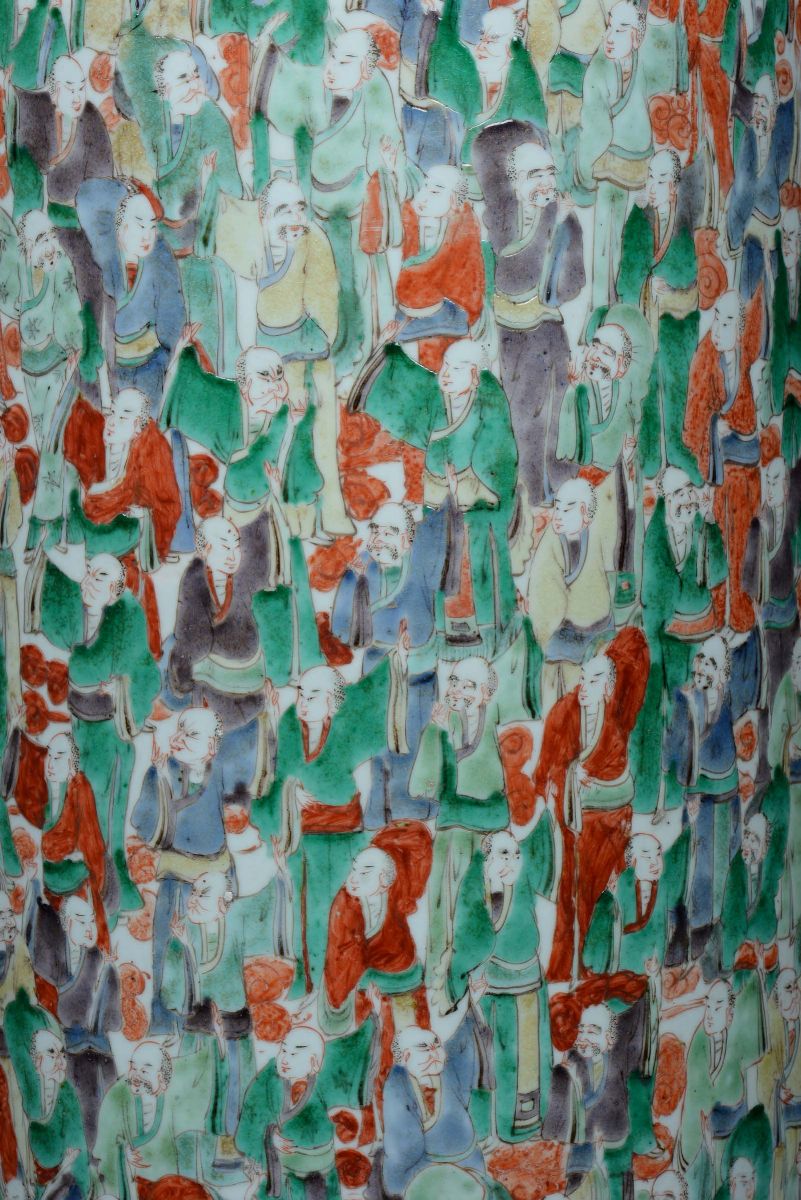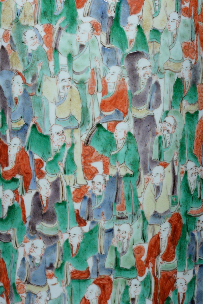 A Five Hundred lohan Famille Verte polychrome porcelain vase, China, Qing Dynasty, 19th century Decoration with figures of wise men and oriental people