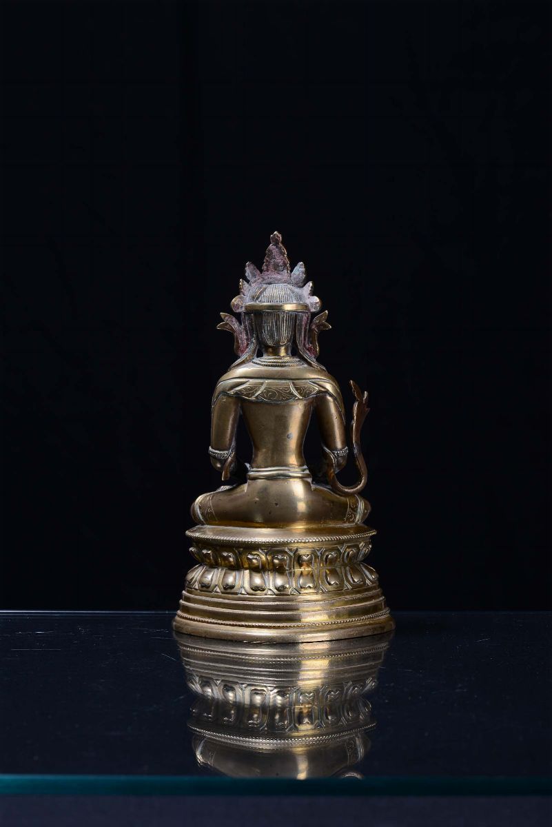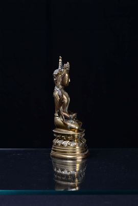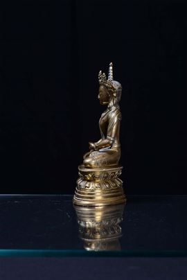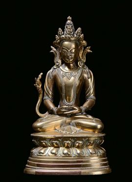 A gilt bronze figure of Amitayus sitting on a lotus flower, China, Qing Dynasty, Qianlong Period (1736-1795)