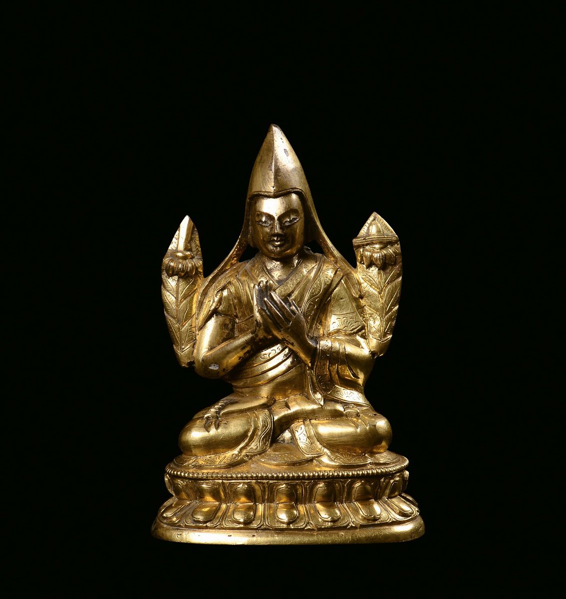 A gilt bronze figure of Tibetan lama, China, Qing Dynasty, 18th century