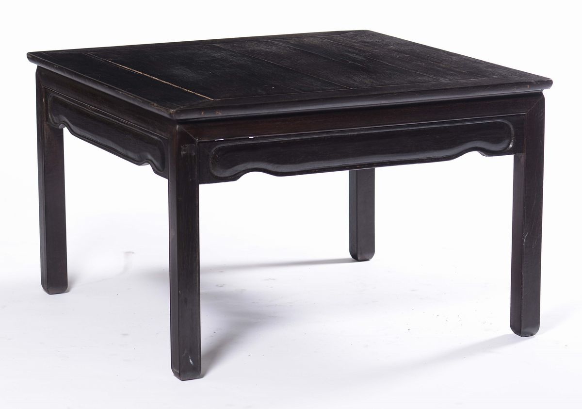 A Homu wood table, China, Qing Dynasty, 19th century. With inscriptions on the legs