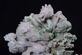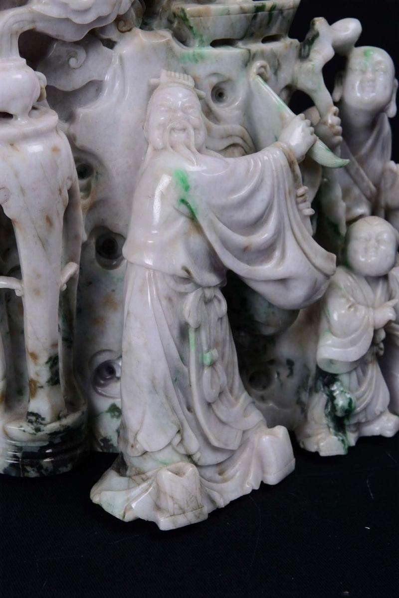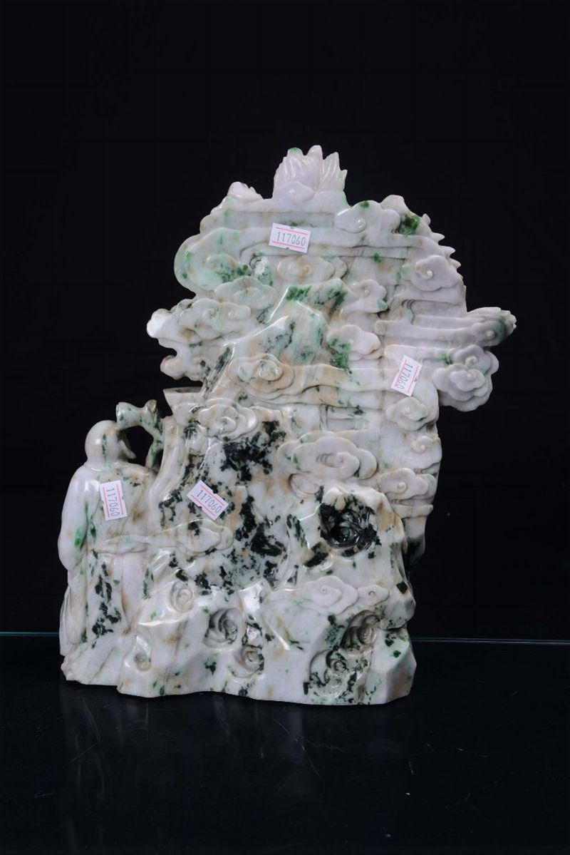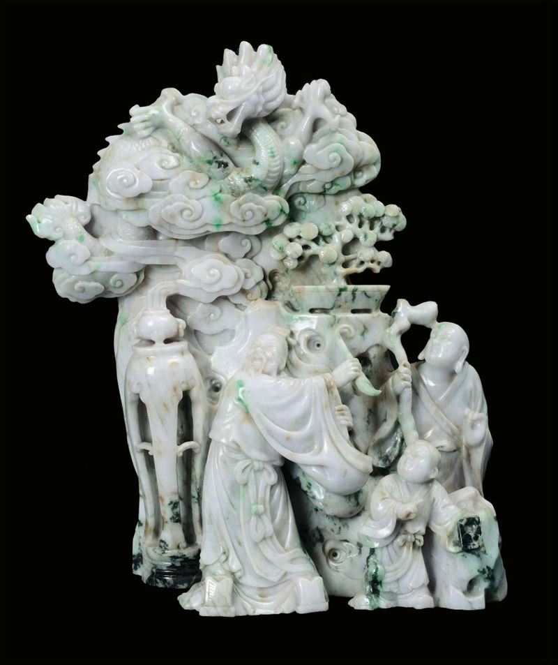 A large jadeite group with dragon and landscapes, China, Qing Dynasty, 20th century