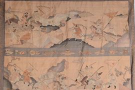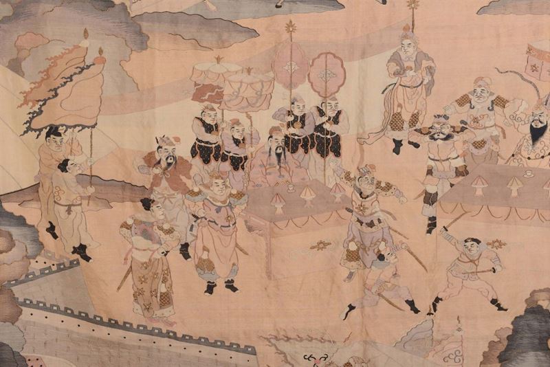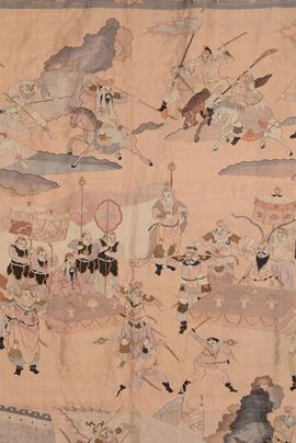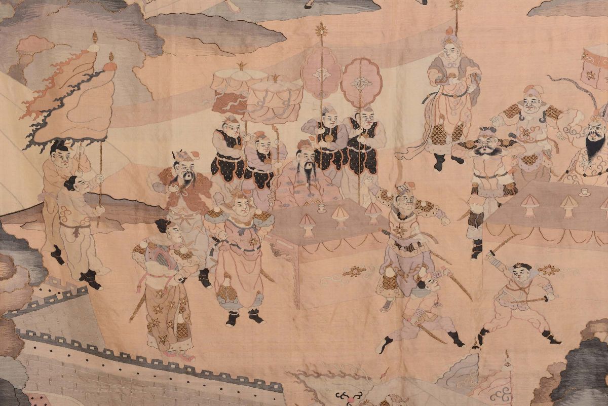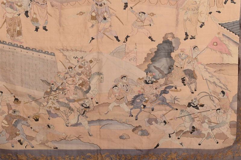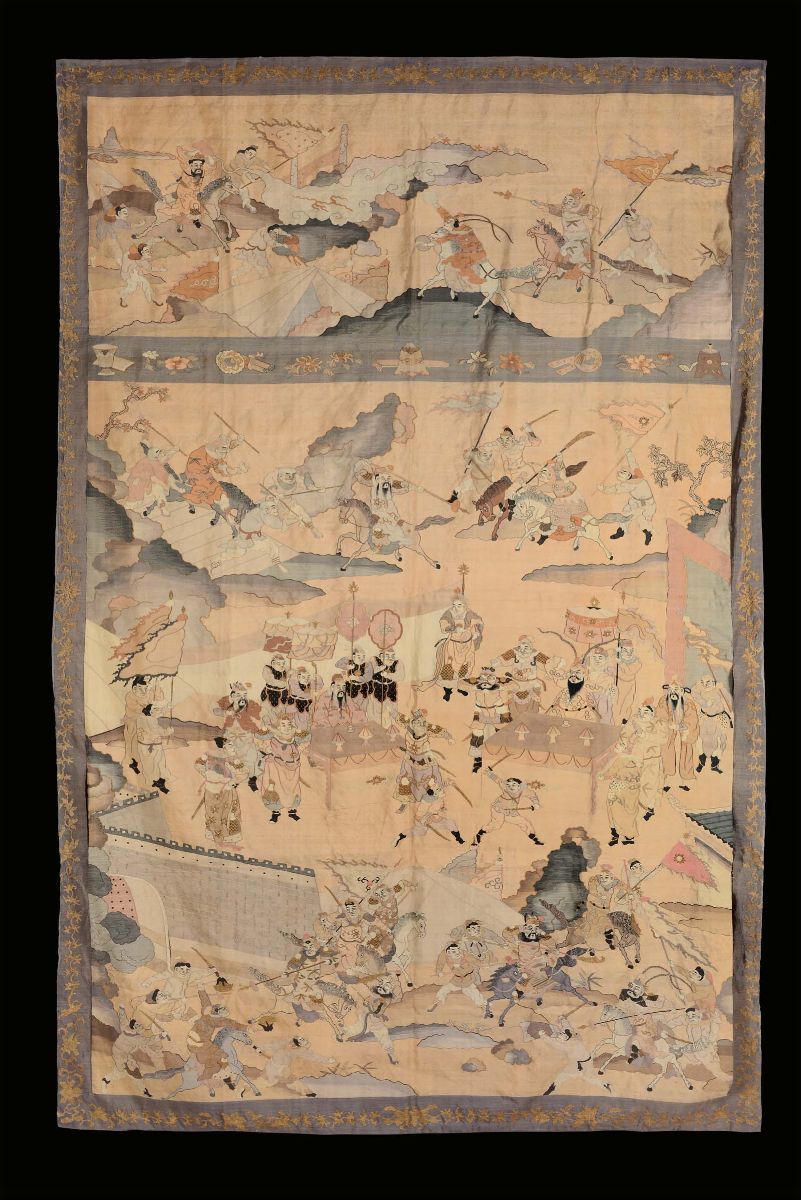 A large kesy tapestry representing a battle, Qing Dynasty, Qianlong Period (1736-1795)