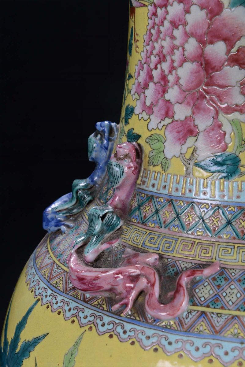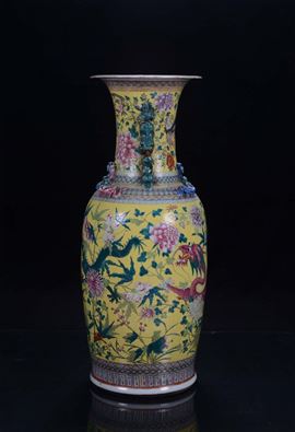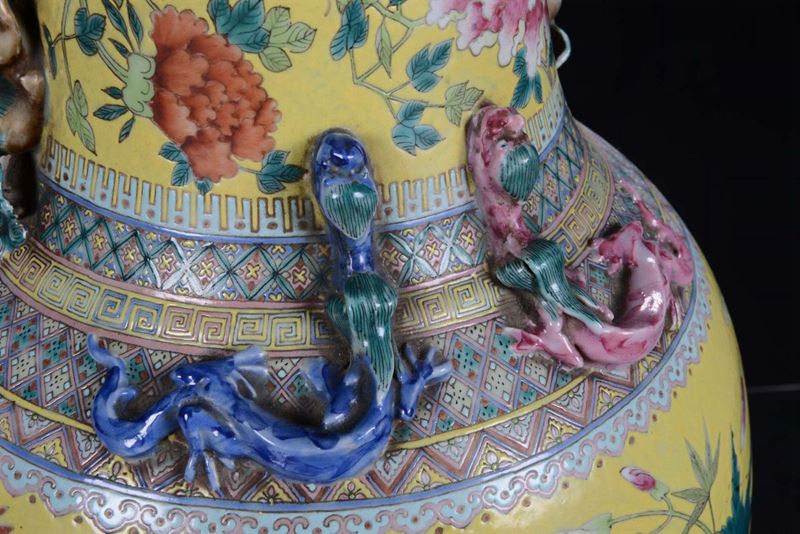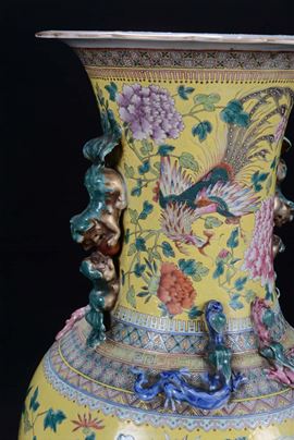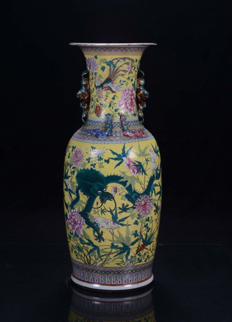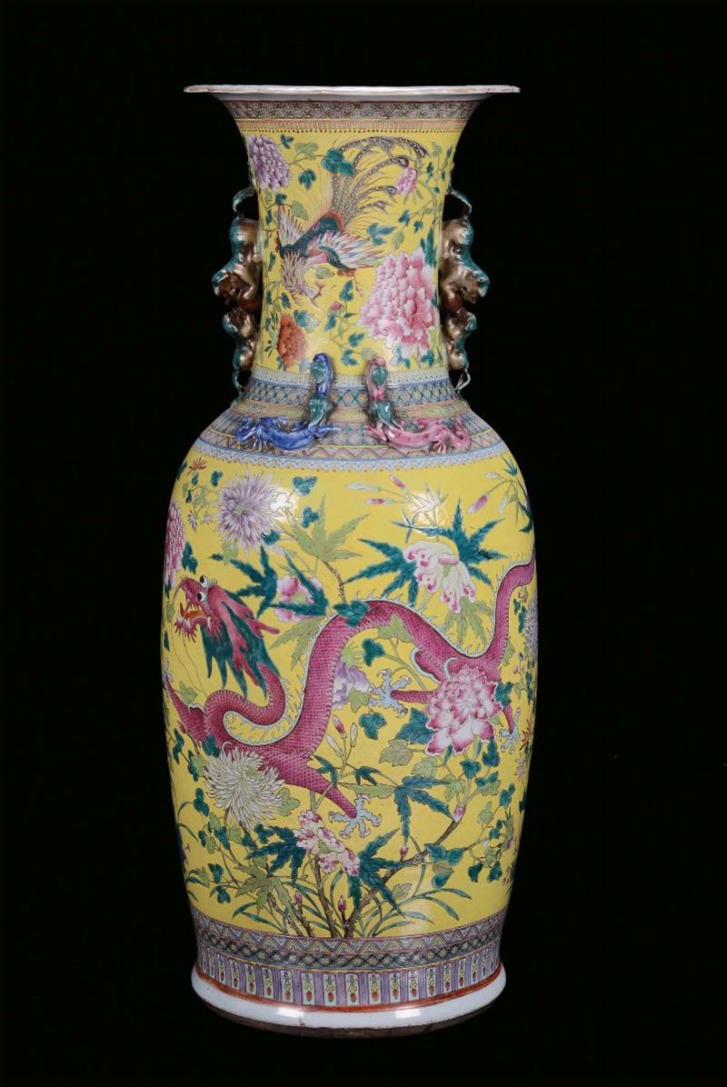 A large porcelain vase with yellow background, China, Qing Dynasty, 19th centuryDecoration with dragons and phoenixes