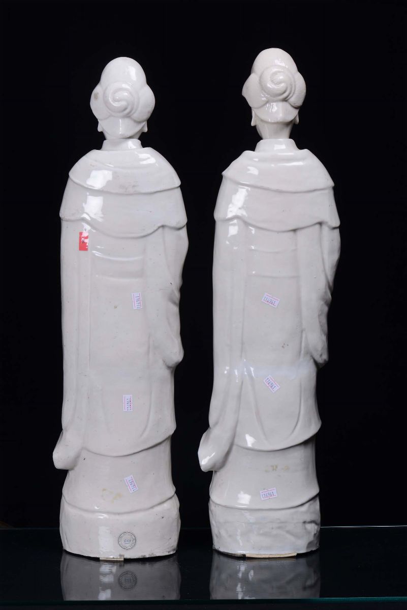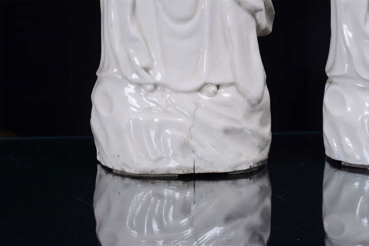 A pair of Blanc de Chine porcelain Guanyin, China, Qing Dynasty, 18th century