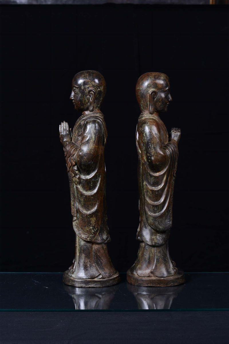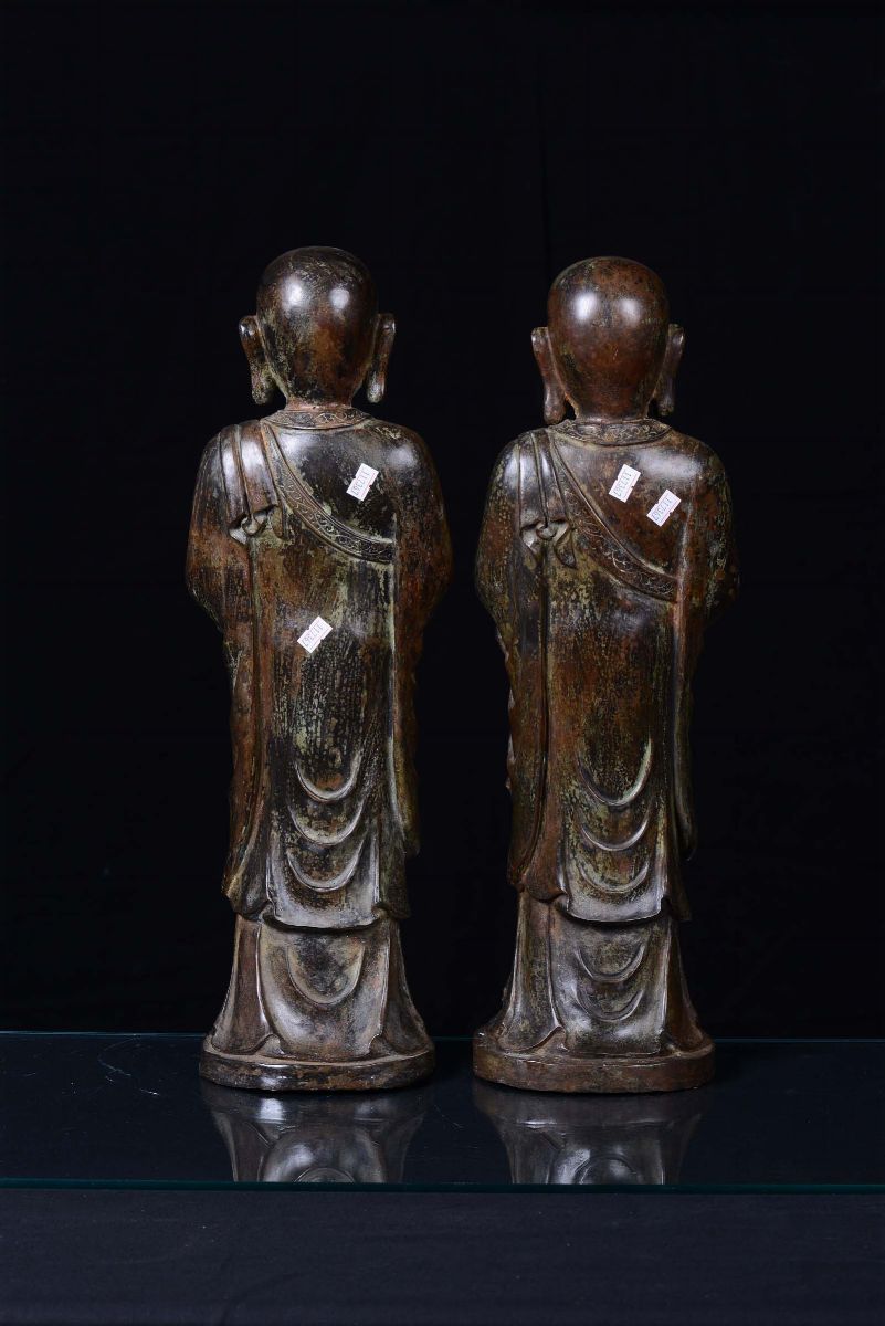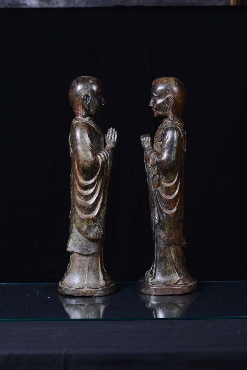 A pair of bronze standing Buddha, China, 20th century