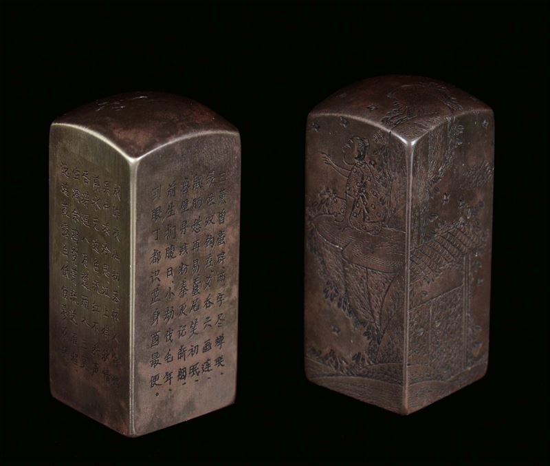 sui lati decorati con ideogrammi, cm 3x3x7