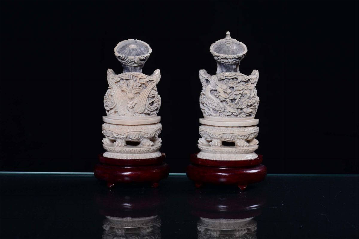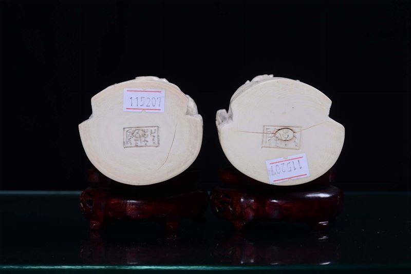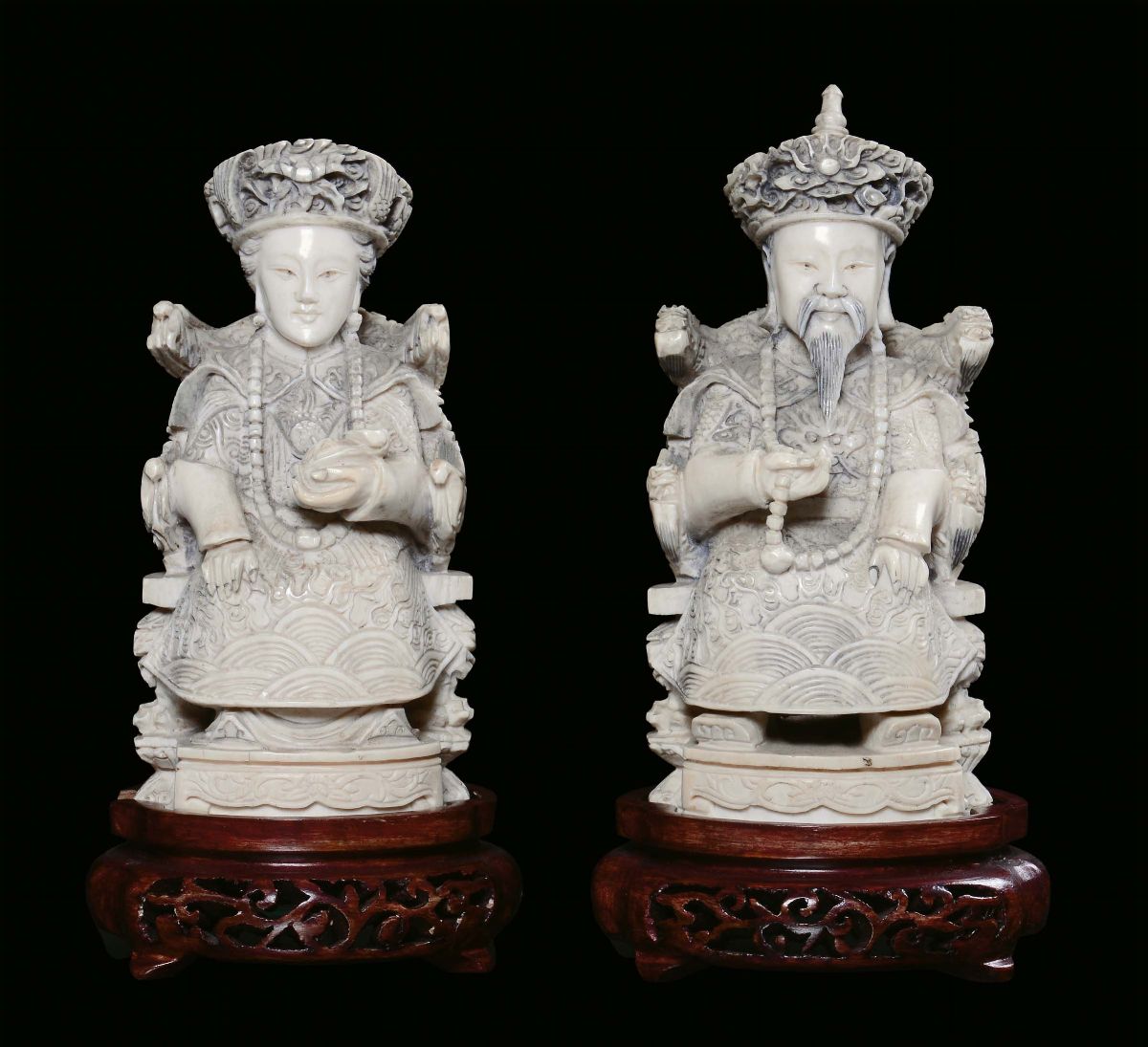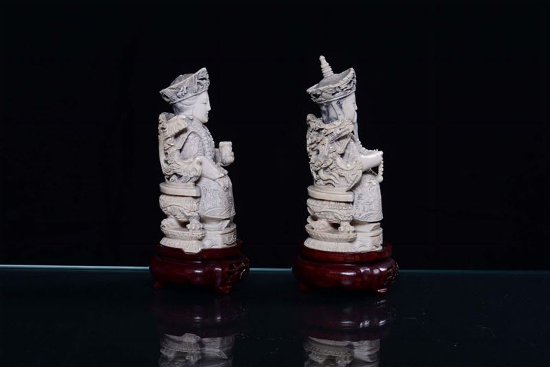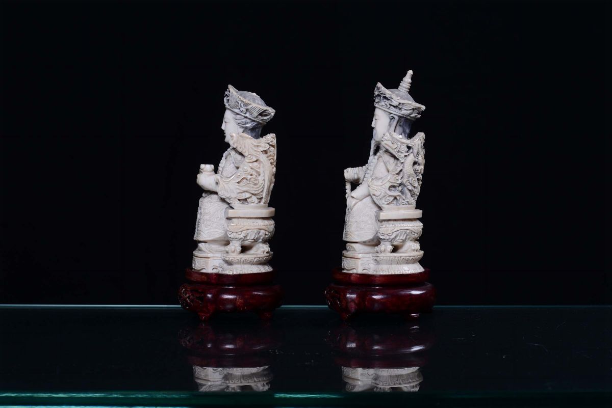 A pair of ivory sculptures representing rulers, China 19th-20th century