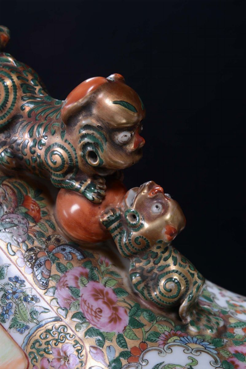 A pair of polychrome porcelain vases, Famille Rose, China, Canton, Qing Dynasty, 19th centuryDecoration with court life [..]