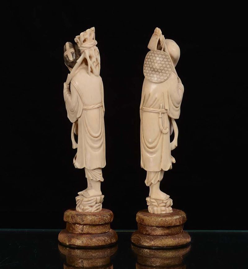 A pair of small ivory statues , Japan, late 19th century