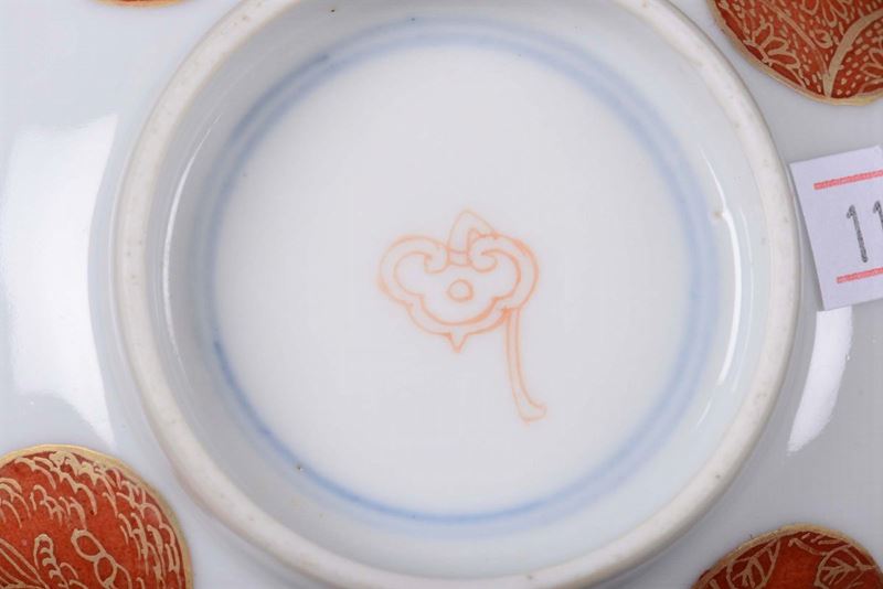 A pair of white porcelain bowls with red and gold rosette decoration, China, Qing Dynasty, Qiannlong Period ( 1736-1795) Ruj Symbol