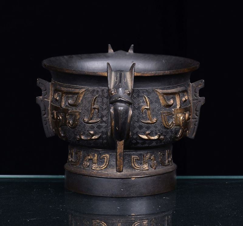 A partially gilt bronze censer or gui, archaic shape, China, Ming Dynasty, 17th centuryA similar sample is duplicated in [..]