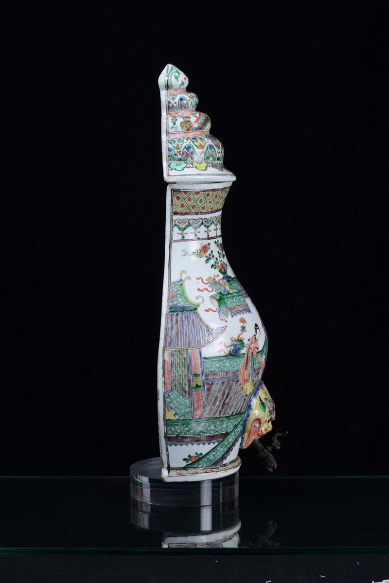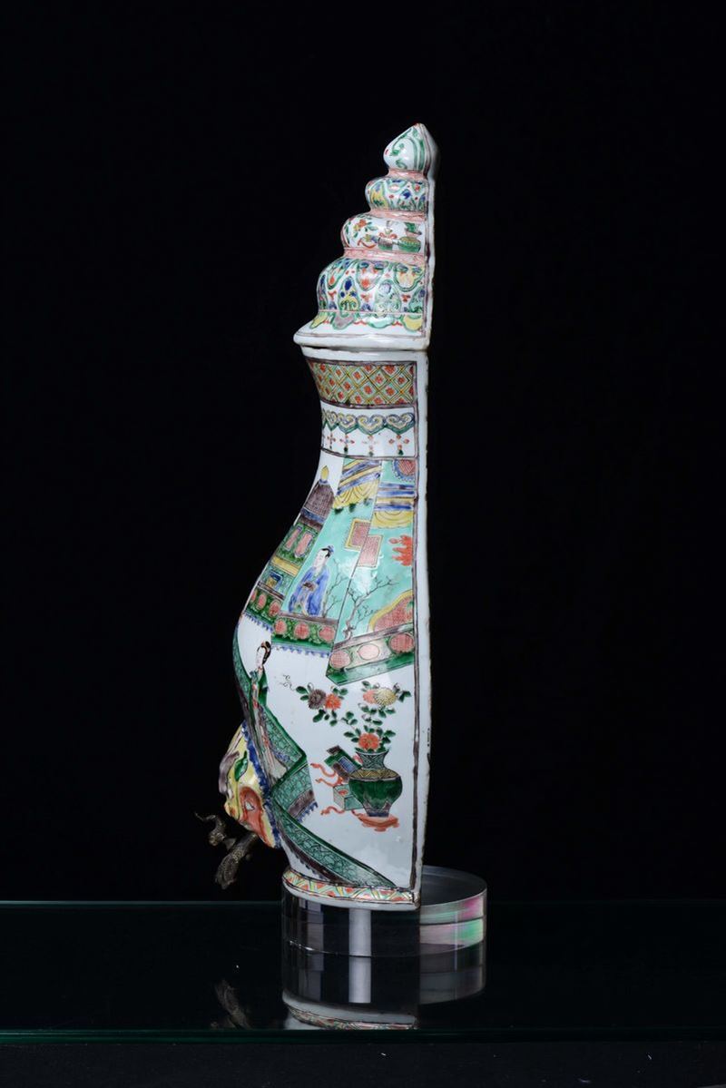 A polychrome decoration with oriental figures and temples, Famille Verte, China, Qing Dynasty, Kangxi Period (1662-1722)