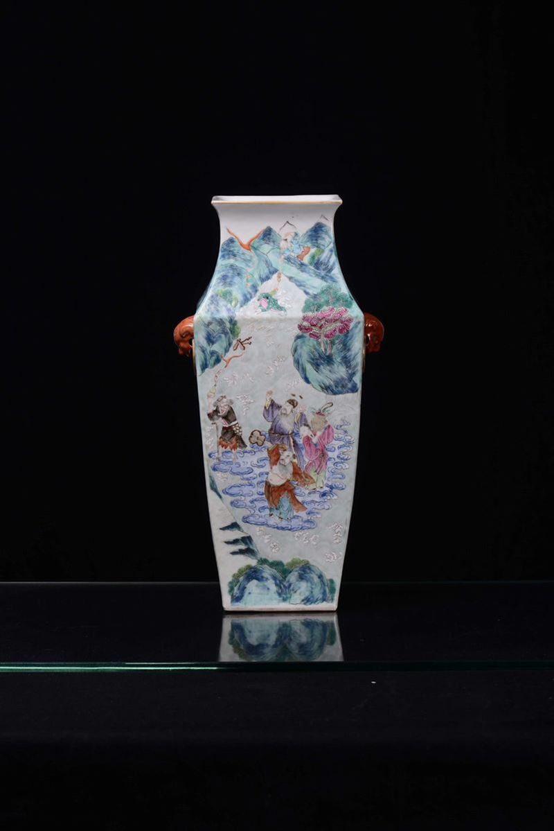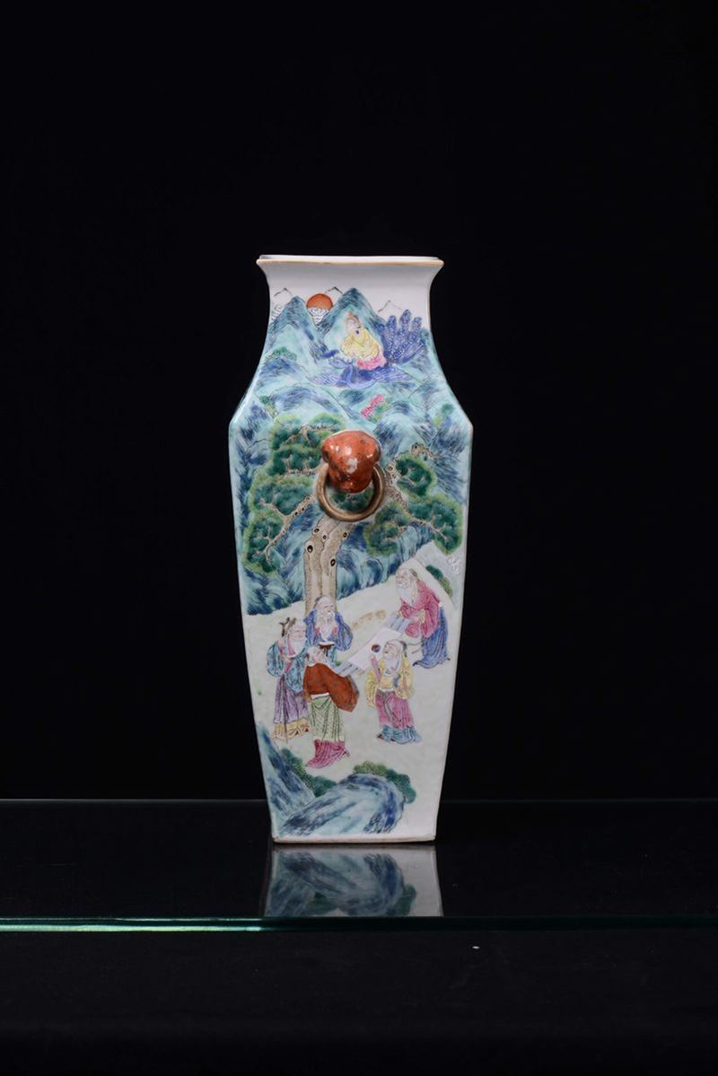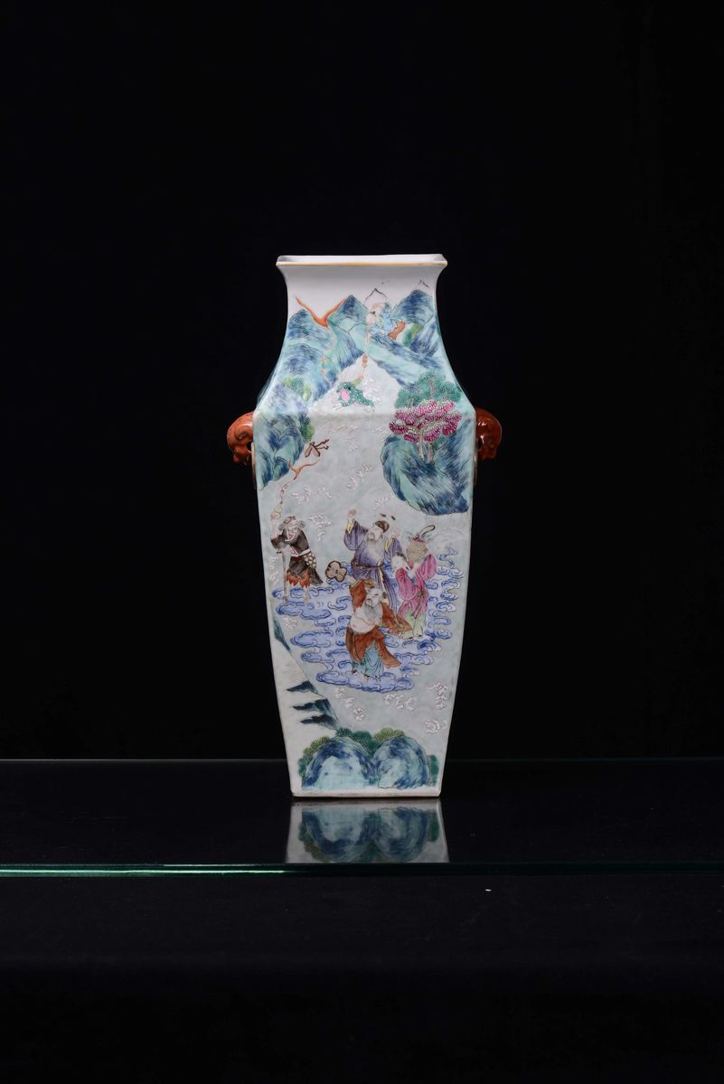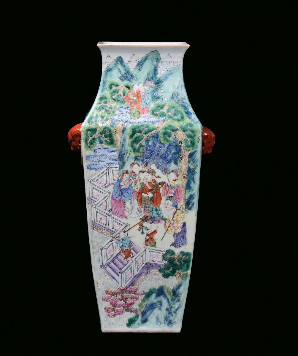 A polychrome Famille Rose porcelain vase with figures, China, Qing Dynasty, Daoguang Period (1821-1850)