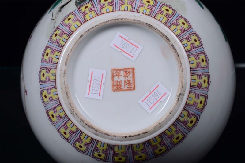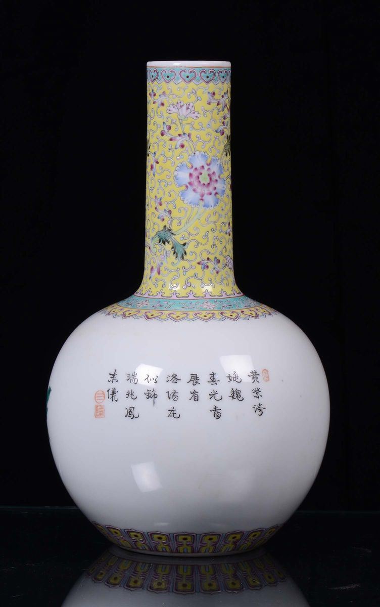 A polychrome porcelain vase decorated with flowers and bird of Paradise , China Republic, 20th century