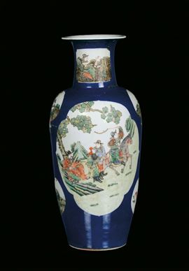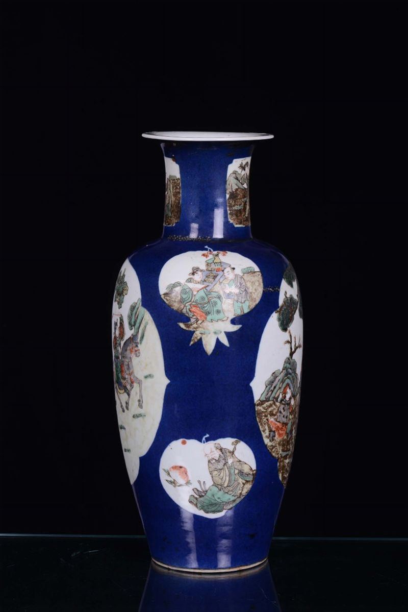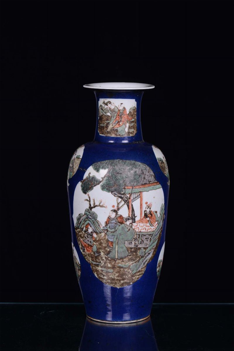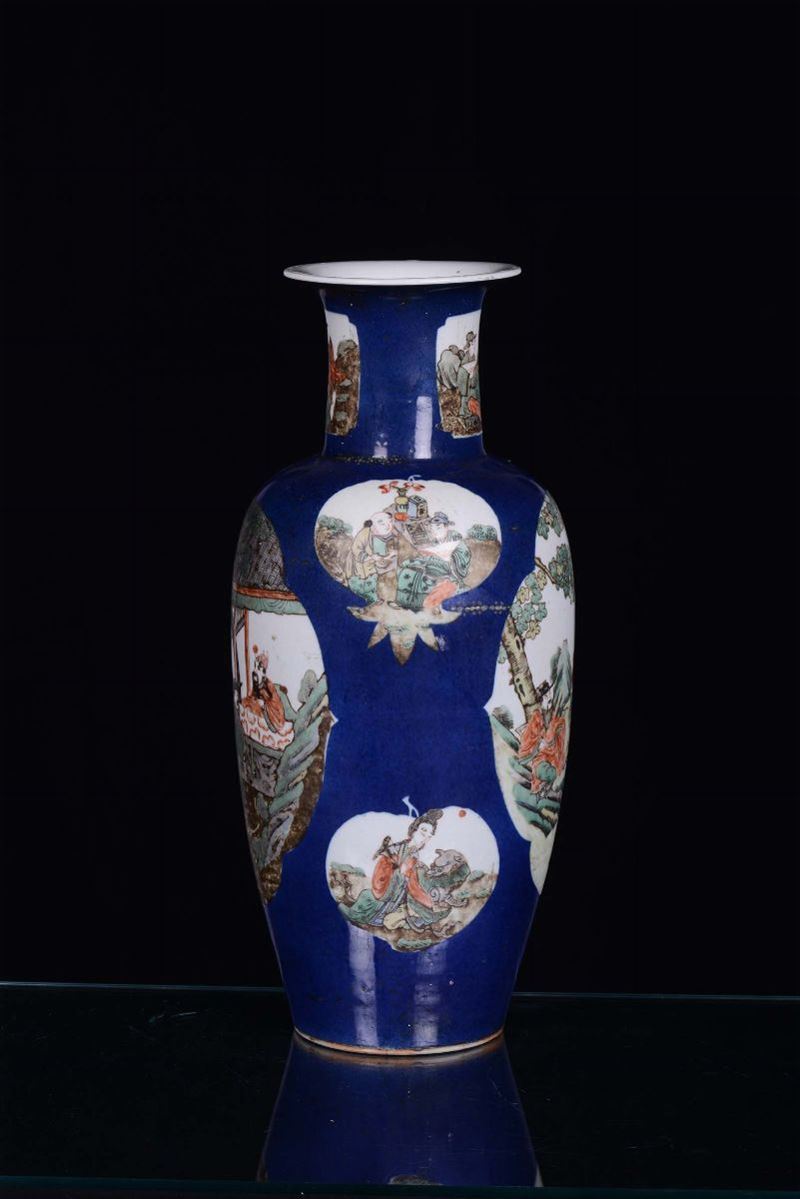 A porcelain vase decorated on blue background, China, Qing Dynasty, 19th century