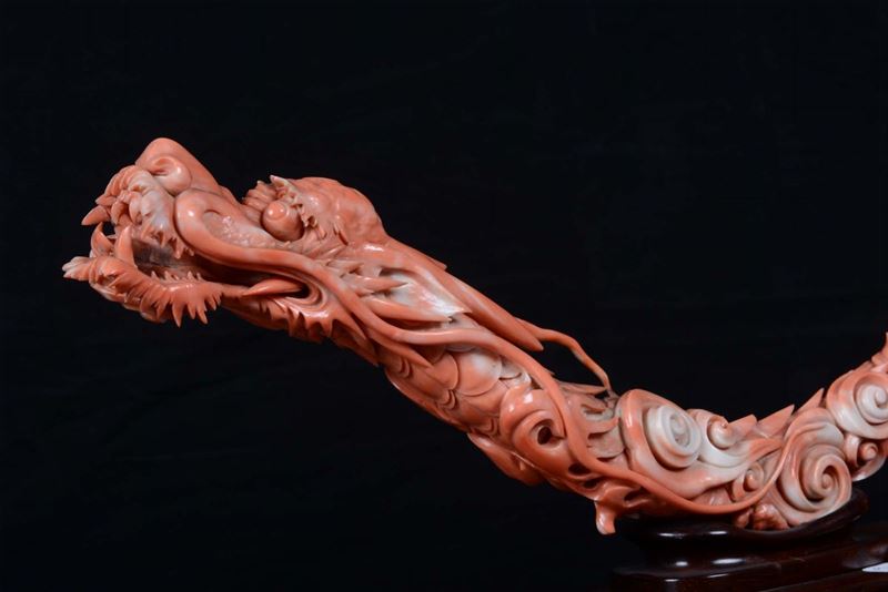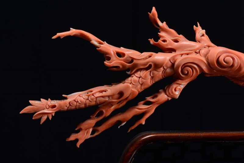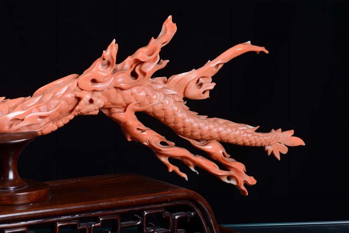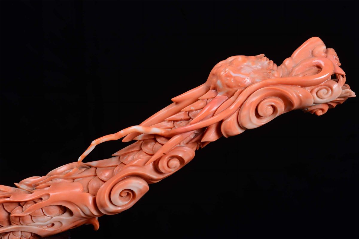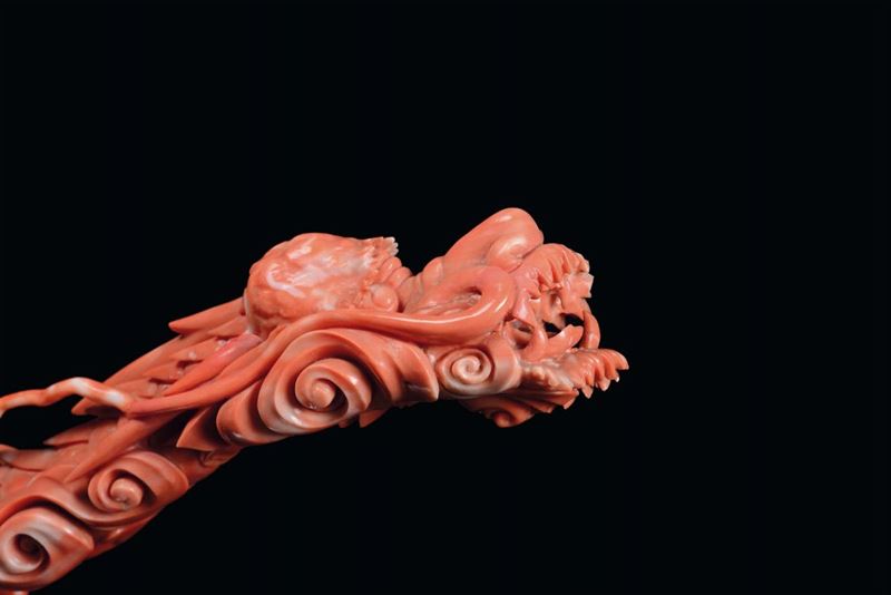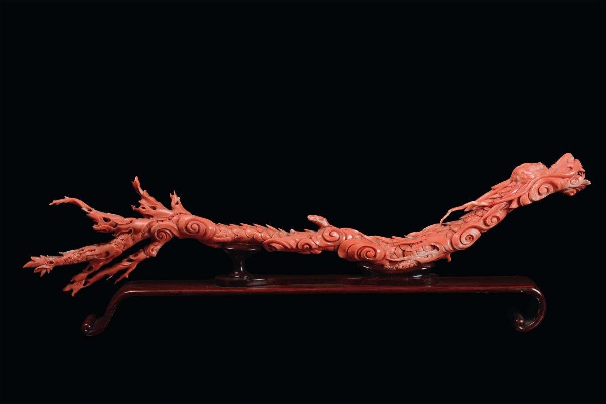 A rare and large red coral branch sculpted as a dragon, China, Qing Dynasty, 19th century