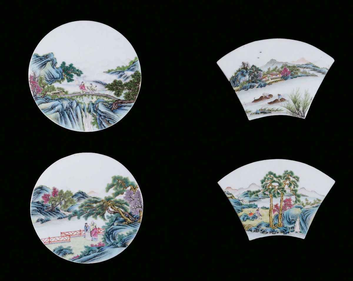 A series of eight polychrome porcelain plates with figures, China, Qing Dynasty, 19th century