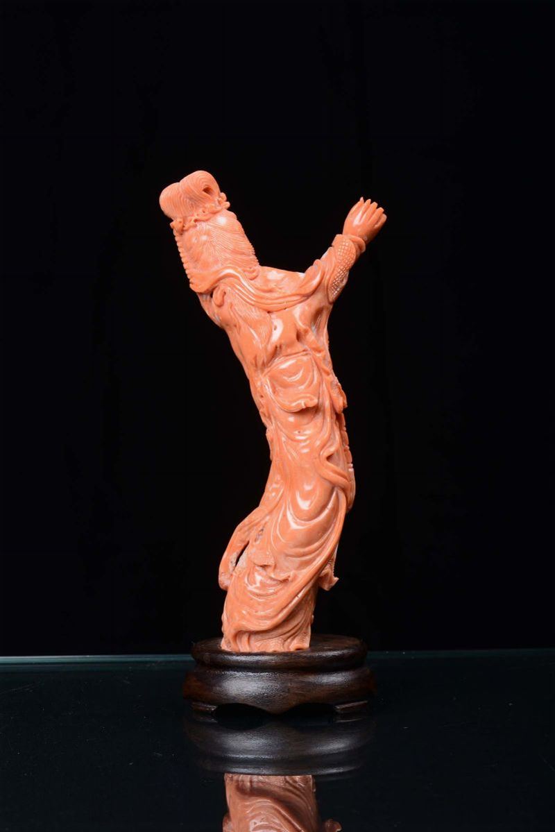 A small coral sculpture representing Guanyin, China 19th century