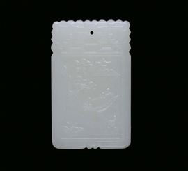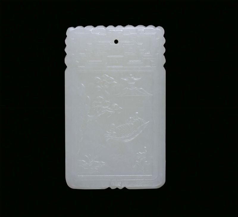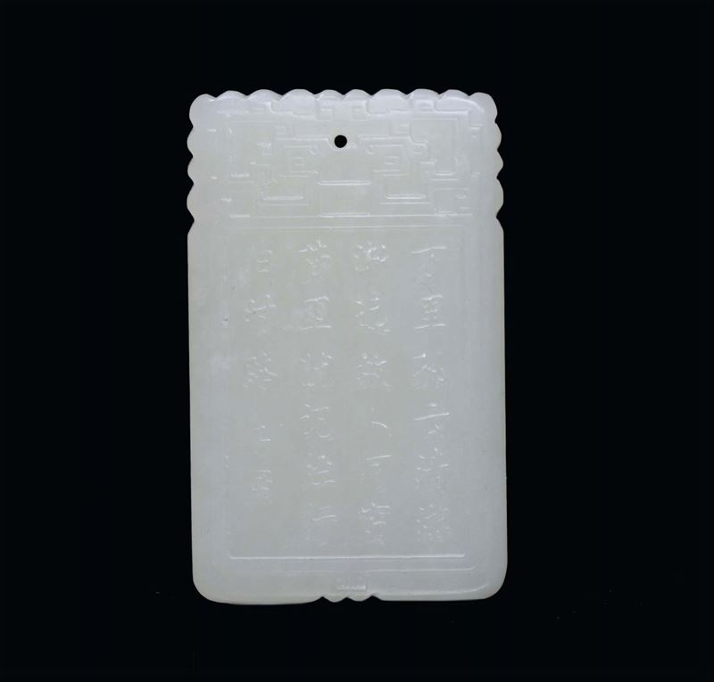 A small squared white jade plate with inscriptions and landscapes, China, Qing Dynasty, 19th century