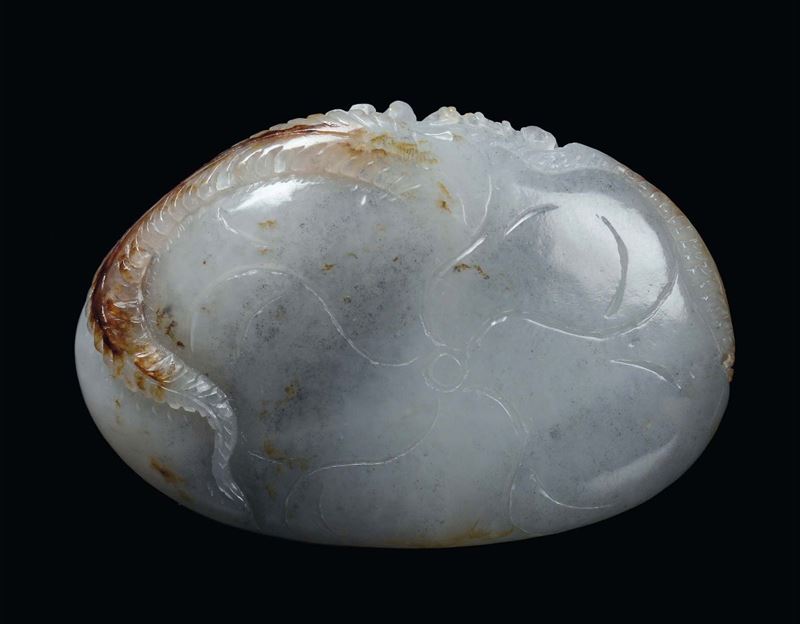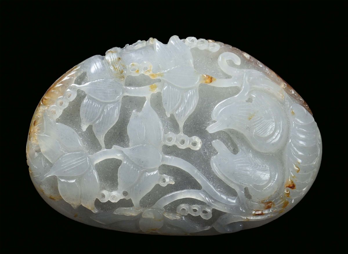 A small white and russet jade decorated with birds, China, Qing Dynasty, 19th century