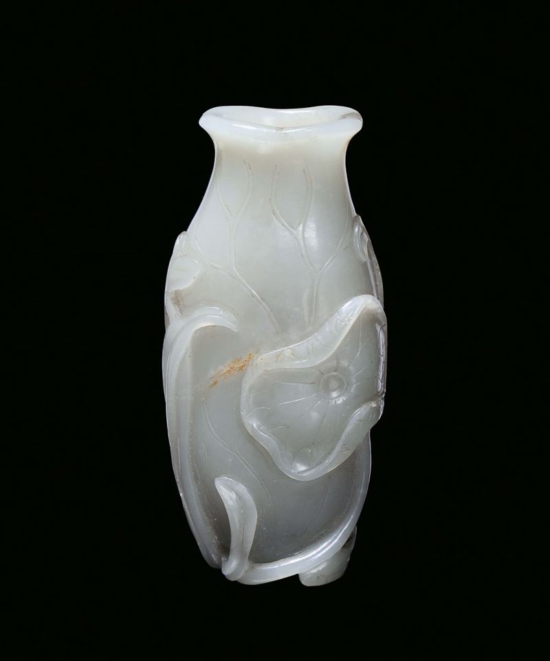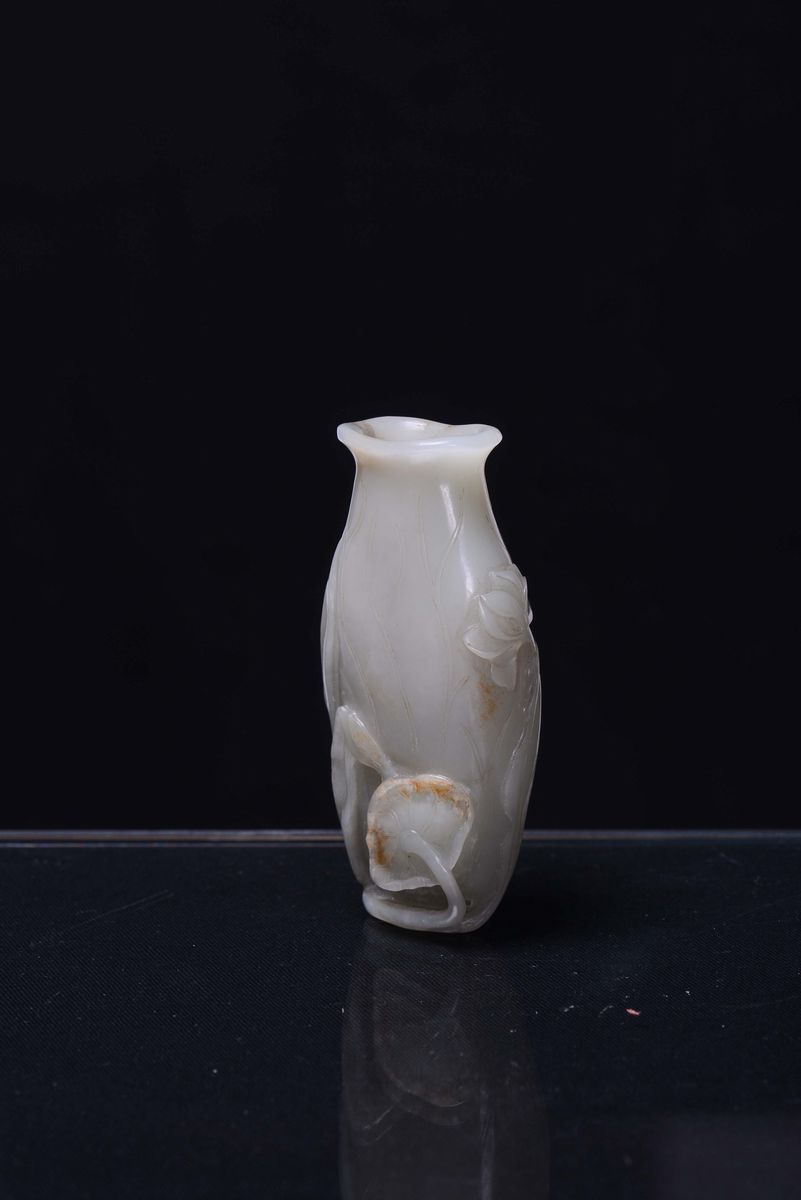 A small white jade vase sculpted with floral motives, China, Qing Dynasty, Qianlong Period (1736-1795)