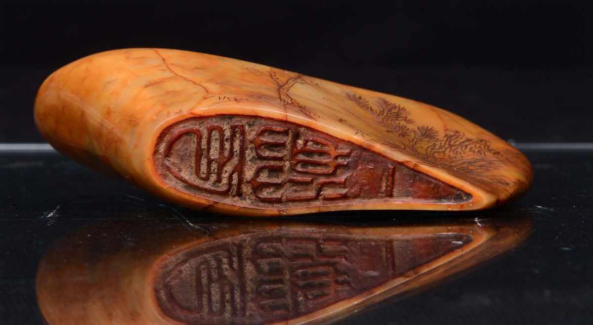 A soapstone seal carved with naturalistic motives, China, Qing Dynasty, 19th century