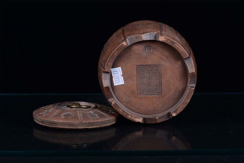 A stoneware Yiing tea-box with inscriptions, China, Qing Dynasty, 19th century