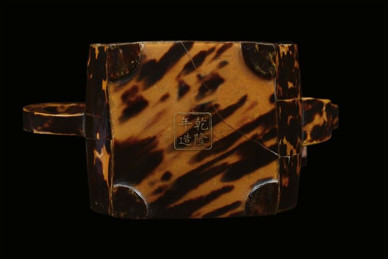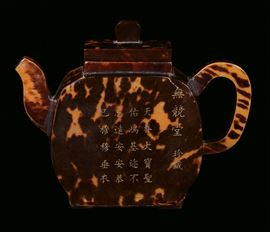 A tortoise teapot, China, Qing Dynasty, Qianlong Period (1736-1795)Decorations with ideograms on the sides, Mark and the [..]